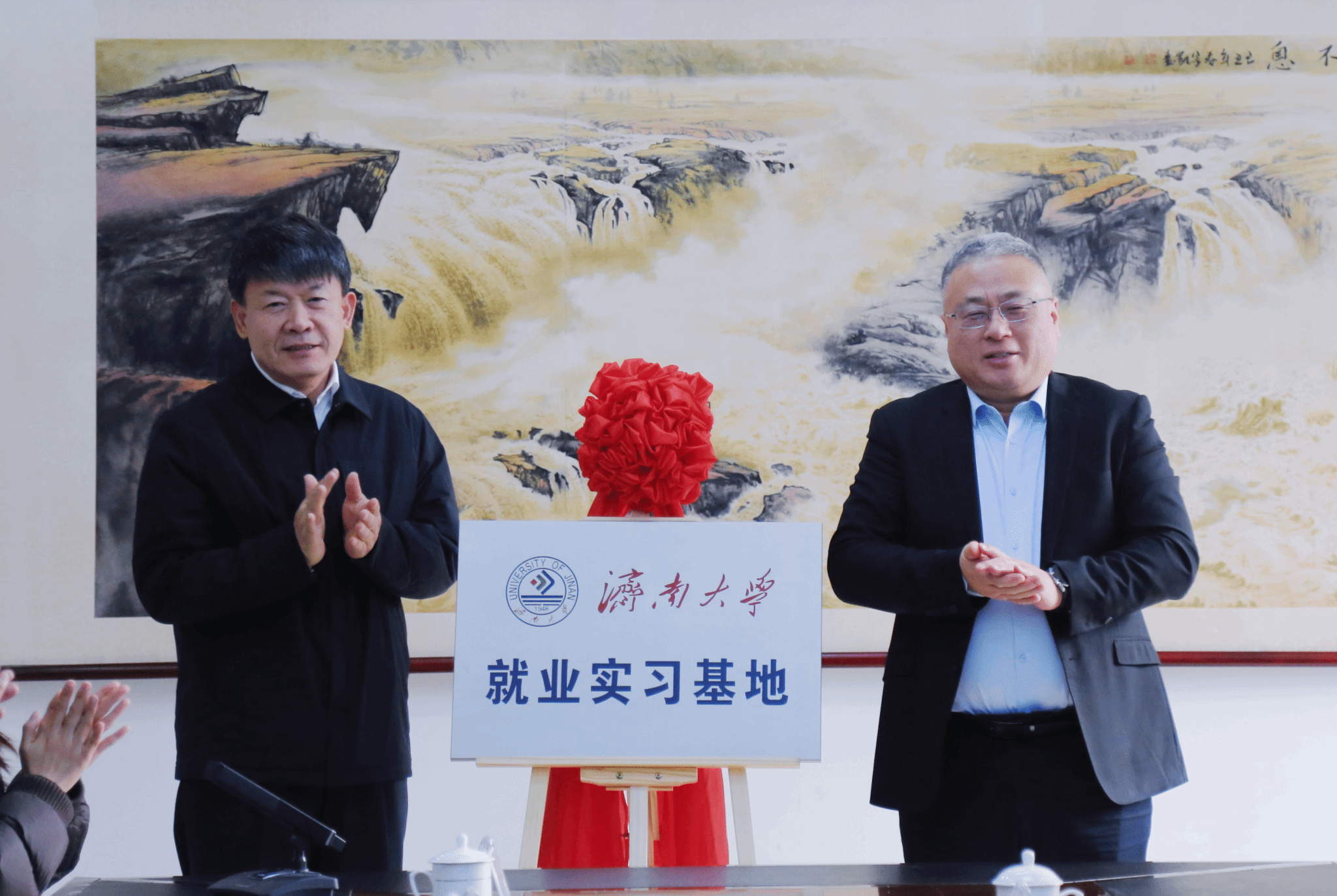 儀式現(xiàn)場(chǎng),黃加棟與鄭振亮共同為濟(jì)南大學(xué)就業(yè)實(shí)習(xí)基地揭牌。合作發(fā)展處處長(zhǎng)劉振與張濱共同簽署濟(jì)南大學(xué)與濱州經(jīng)濟(jì)技術(shù)開(kāi)發(fā)區(qū)文化創(chuàng)意產(chǎn)業(yè)合作協(xié)議書(shū)。