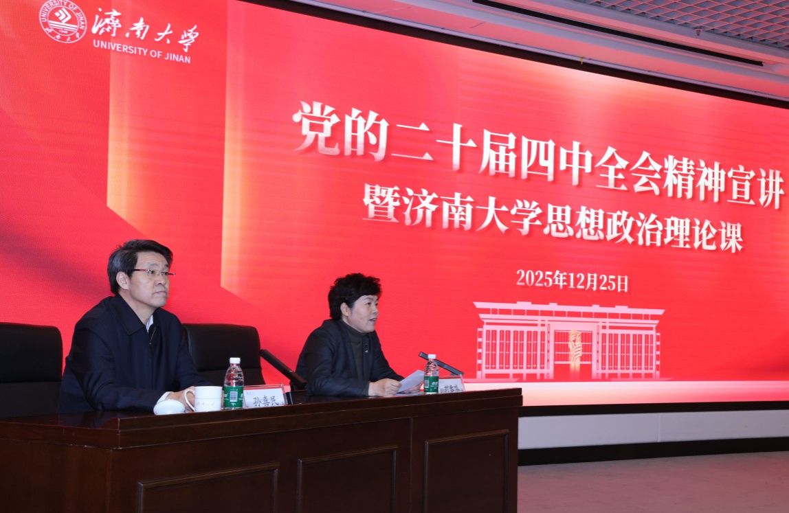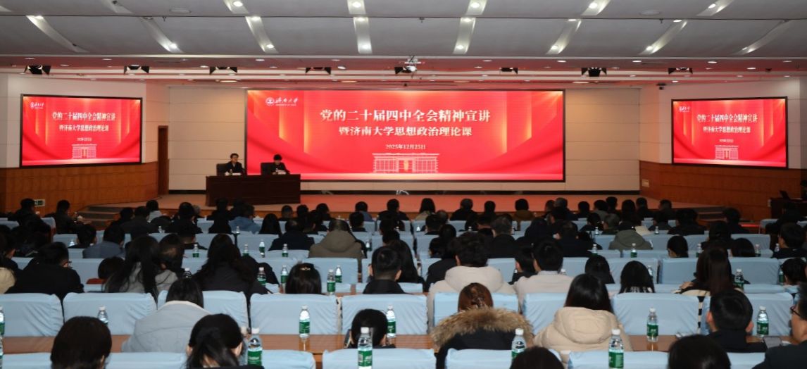 12月25日上午,副省長孫喜民到濟(jì)南大學(xué),以“把握時代大勢勇?lián)鷼v史使命奮力書寫挺膺擔(dān)當(dāng)?shù)那啻浩隆睘轭}為師生講授思政課,宣講黨的二十屆四中全會精神。學(xué)校全體校領(lǐng)導(dǎo)、中層干部、獨(dú)立運(yùn)行科研機(jī)構(gòu)負(fù)責(zé)人,師生代表聆聽了報告。