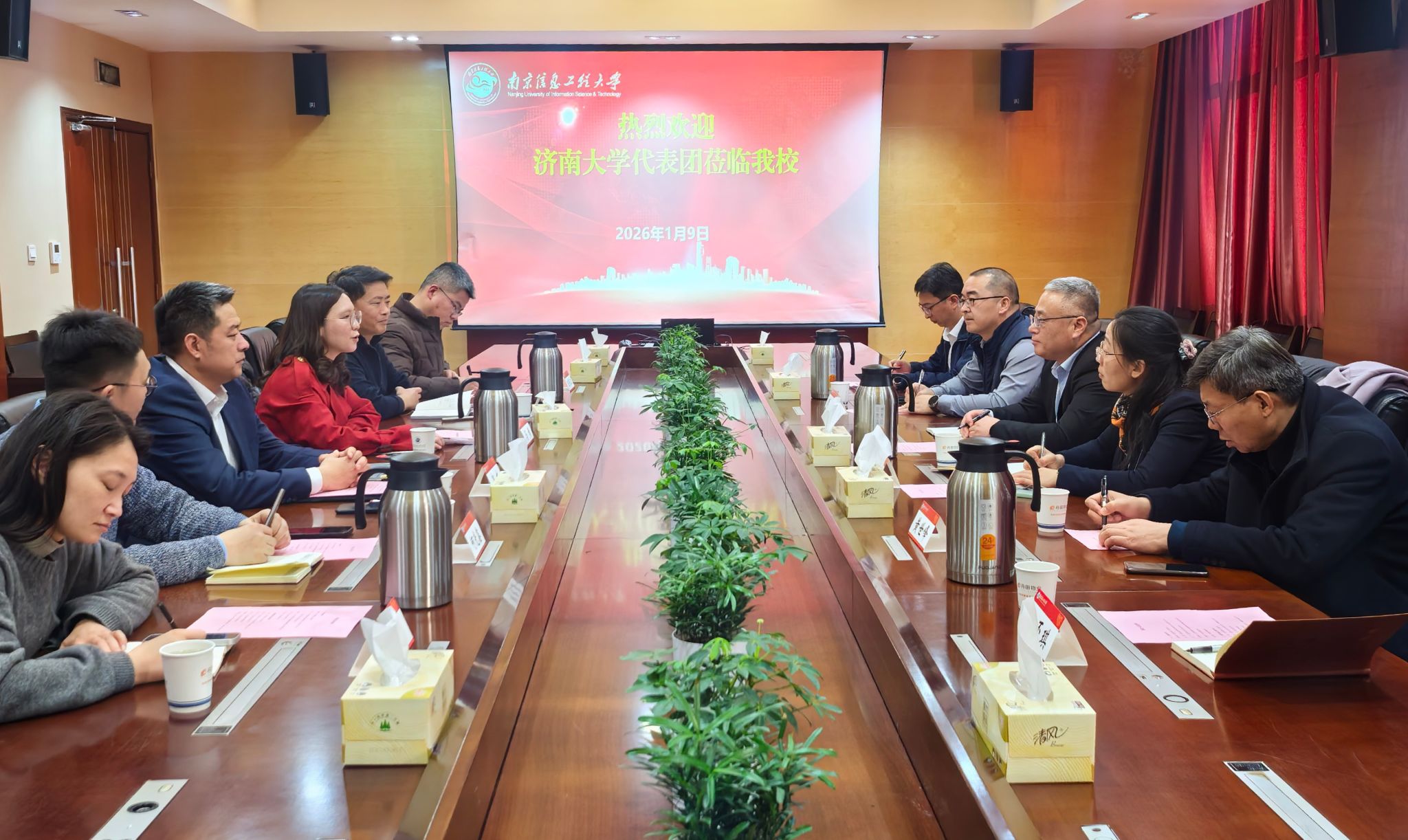 為深入學(xué)習(xí)借鑒國(guó)內(nèi)兄弟高校在推進(jìn)高水平教育對(duì)外開放方面的先進(jìn)經(jīng)驗(yàn),進(jìn)一步推動(dòng)我校國(guó)際化辦學(xué)內(nèi)涵式發(fā)展,1月9日,學(xué)校黨委常委、副校長(zhǎng)黃加棟帶領(lǐng)科技處、國(guó)際合作與交流處、山東省綠色與智能建筑材料重點(diǎn)實(shí)驗(yàn)室等部門負(fù)責(zé)人到南京信息工程大學(xué)調(diào)研交流。南京信息工程大學(xué)黨委常委、副校長(zhǎng)馬嫣,國(guó)際合作與交流處、科技處、雷丁學(xué)院、沃特福德學(xué)院等部門負(fù)責(zé)人參加交流活動(dòng)。