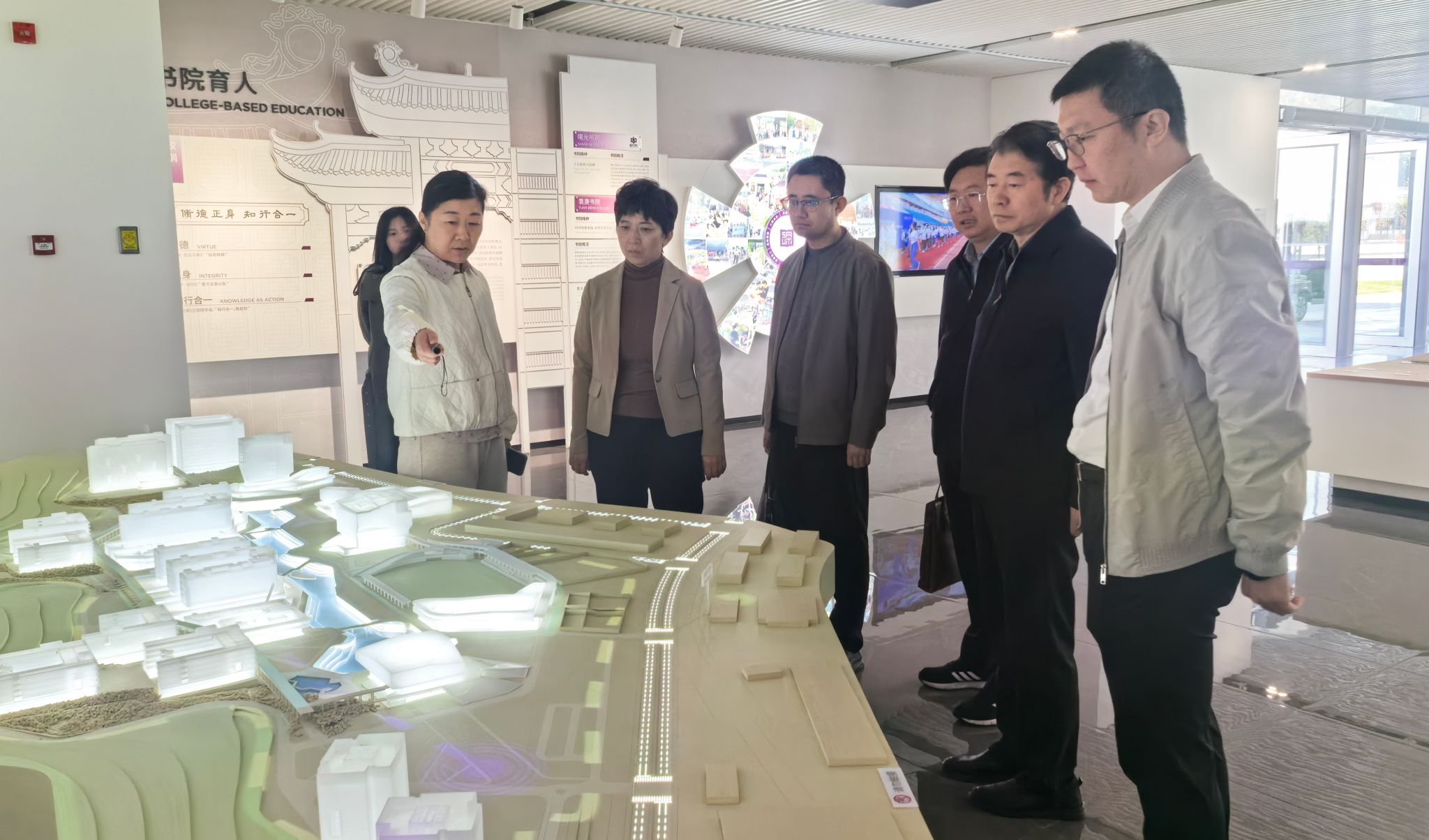 在深圳理工大學(xué),調(diào)研團(tuán)隊(duì)參觀了學(xué)校辦學(xué)歷史與發(fā)展成就展,重點(diǎn)參觀了袁庚書院,深入了解該校以書院制為載體的校園文化培育模式,并與深圳理工大學(xué)黨委副書記王慧以及相關(guān)部門負(fù)責(zé)人進(jìn)行了座談交流,結(jié)合本校辦學(xué)實(shí)際與發(fā)展特色,系統(tǒng)分享了在高校內(nèi)部治理領(lǐng)域的實(shí)踐探索與創(chuàng)新成果。