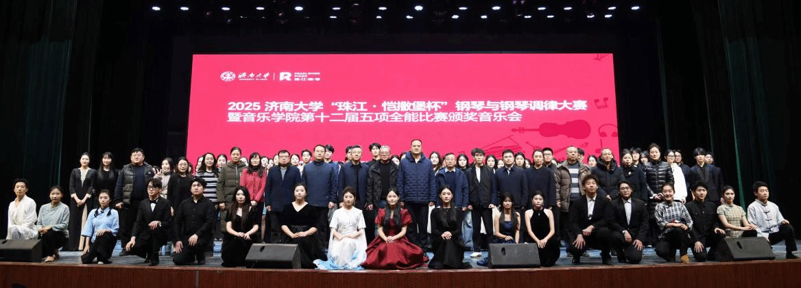 為深化校企協(xié)同育人,激發(fā)學(xué)生學(xué)習(xí)熱情,提升專業(yè)實(shí)踐能力,音樂(lè)學(xué)院于1月13日在大禮堂舉辦2025年濟(jì)南大學(xué)“珠江·愷撒堡杯”鋼琴與鋼琴調(diào)律大賽暨第十二屆五項(xiàng)全能比賽頒獎(jiǎng)音樂(lè)會(huì)。學(xué)校黨委副書(shū)記張慶國(guó)、廣州珠江愷撒堡鋼琴有限公司黨委副書(shū)記李富龍、銷售部業(yè)務(wù)經(jīng)理廖濤、山東省音協(xié)理事暨山東超越樂(lè)器有限公司總經(jīng)理李英杰等嘉賓出席活動(dòng)。學(xué)校學(xué)生工作處、教務(wù)處、合作發(fā)展處、團(tuán)委以及音樂(lè)學(xué)院相關(guān)負(fù)責(zé)人與300余名師生共同參加了本次盛會(huì)。