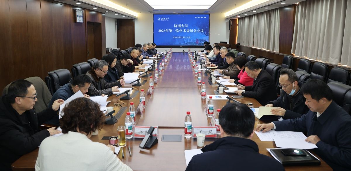 1月22日,濟(jì)南大學(xué)2026年第一次學(xué)術(shù)委員會會議召開。會議由學(xué)術(shù)委員會主任劉宗明主持,學(xué)術(shù)委員會全體委員、學(xué)術(shù)委員會辦公室、各專門委員會、科技處、社科處等相關(guān)人員參加會議。