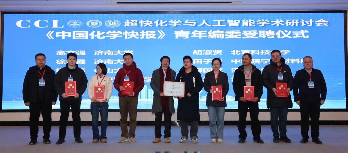 開幕式上舉行了《中國化學快報》青年編委受聘儀式,黃加棟、郭煥芳共同為來自中山大學、華東理工大學、北京師范大學、北京科技大學及濟南大學等多所高校的青年學者頒發(fā)了聘書。