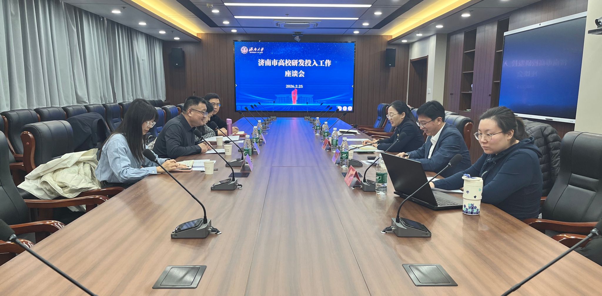 彭文博充分肯定了我校在加大研發(fā)投入工作中取得的實(shí)際成效,對(duì)我校高質(zhì)量完成全省高??蒲薪y(tǒng)計(jì)工作表示高度贊賞,著重就如何進(jìn)一步提升駐濟(jì)高校研發(fā)投入、科技創(chuàng)新投入等工作進(jìn)行了深入交流和探討。他表示,高校是科技創(chuàng)新的重要策源地,研發(fā)投入是高校可持續(xù)發(fā)展的內(nèi)生動(dòng)力,濟(jì)南市將持續(xù)加大研發(fā)投入,完善政策支持與資源配置,為高校吸引匯聚頂尖人才與創(chuàng)新資源提供堅(jiān)實(shí)支撐。濟(jì)南市科技局將充分發(fā)揮職能和作用,舉力推進(jìn)全市研發(fā)投入工作,切實(shí)為駐濟(jì)高校的科研工作提供更多的支持和幫助。