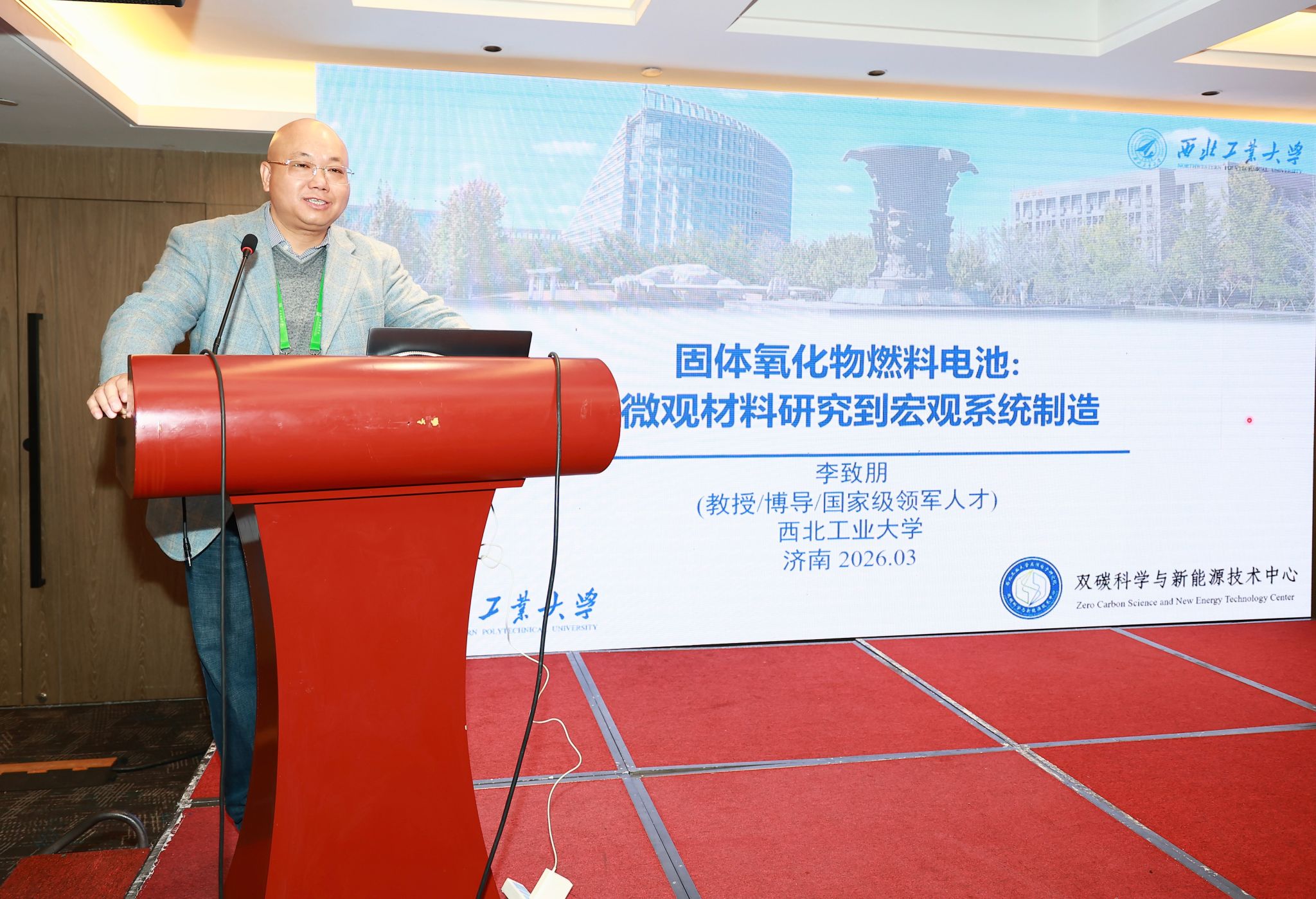 大會特邀四位領域專家作主旨報告。國家杰出青年基金獲得者、山東大學尹龍衛(wèi)教授聚焦鋰-空氣電池過電位與副反應機理,詳解多級孔結構、單原子催化、異質結界面調控等關鍵技術。西北工業(yè)大學李致朋教授以《固體氧化物燃料電池:從微觀材料研究到宏觀系統(tǒng)制造》為主題,解析SOFC材料設計、規(guī)?;苽渑c產業(yè)化瓶頸,提出從實驗室到工業(yè)生產的技術路徑。國家杰出青年基金獲得者、北京化工大學陳仕謀教授圍繞高比能、高安全鋰離子電池關鍵材料研發(fā)及器件集成,聚焦高電壓電解液、硅碳負極、界面調控等核心方向,分享相關技術突破與工程化成果?!吨袊垠w技術》雜志社社長吳敬濤系統(tǒng)梳理了超微領域研究前沿與熱點方向,介紹了期刊平臺建設與成果傳播體系。