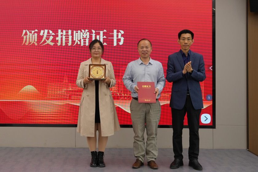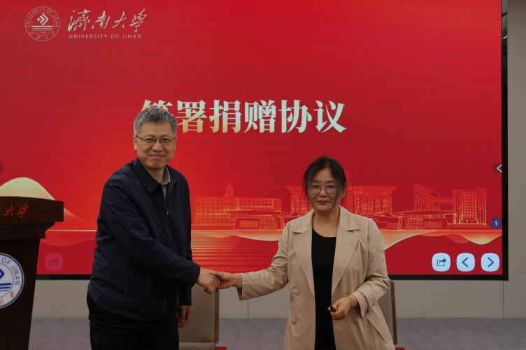 捐贈(zèng)儀式上,于杰分享了自己在濟(jì)大的求學(xué)時(shí)光與深耕新材料領(lǐng)域的創(chuàng)業(yè)歷程,表達(dá)了對母校培育的感恩之情,以及設(shè)立獎(jiǎng)學(xué)金助力學(xué)弟學(xué)妹成長、反哺母校教育事業(yè)的初心。合作發(fā)展處處長劉振與于杰校友共同簽署捐贈(zèng)協(xié)議,李強(qiáng)為于杰、莫海林兩位校友頒發(fā)捐贈(zèng)證書及紀(jì)念獎(jiǎng)牌。