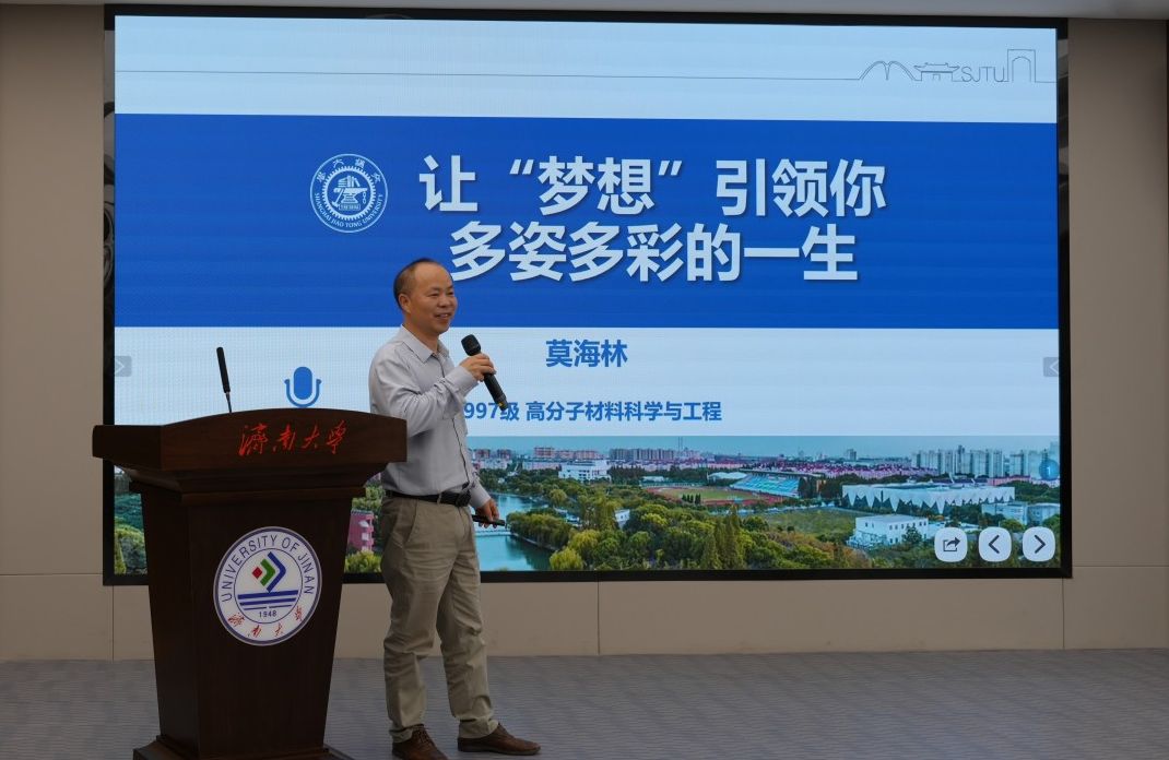 校友生涯講堂上,莫海林以《讓“夢想”引領(lǐng)你多姿多彩的一生》為題講述了自身從山區(qū)求學(xué)成長為行業(yè)精英的經(jīng)歷,從求學(xué)、工作、創(chuàng)業(yè)三方面,分享了在濟(jì)大時(shí)光、知名企業(yè)任職及自主創(chuàng)業(yè)的奮斗歷程。最后他勉勵(lì)同學(xué)們堅(jiān)定理想、終身學(xué)習(xí),實(shí)現(xiàn)個(gè)人與社會(huì)價(jià)值統(tǒng)一。