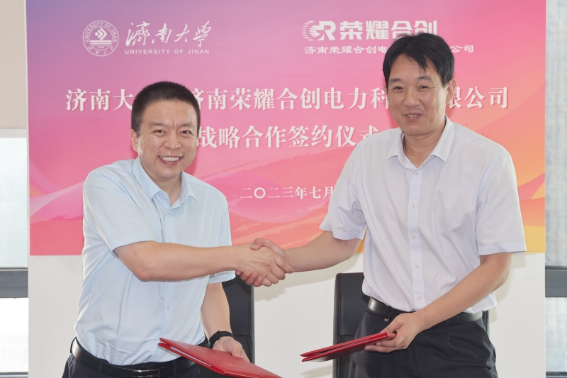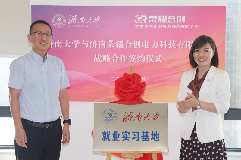 自動化與電氣工程學院院長申濤與公司簽訂戰略合作協議,自動化與電氣工程學院黨委書記夏衛東接收公司捐贈支票并頒發捐贈證書,黨委學生工作部部長劉芝代表學校為“濟南大學就業實習基地”揭牌。