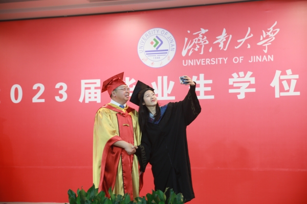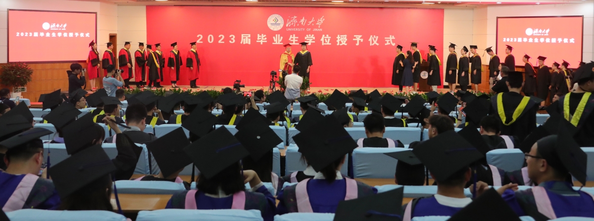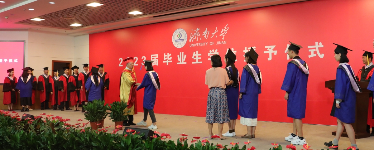 6月22日、23日,濟南大學2023屆畢業生學位授予儀式在學校第一學術報告廳舉行。來自各學院的畢業生在師生和家長們的見證下,身著學士服、碩士服、博士服依次上臺,校長劉宗明為你們一一撥穗、合影留念并親切鼓勵大家以夢為馬,莫負韶華。你們或比心、或自拍、或昂首挺胸、或激動萬分……大家靜靜感受這溫暖又神圣的一刻。流蘇從帽子右邊撥到左邊,也預示著你們即將離開學校,踏上社會,去奔赴下一場山海。