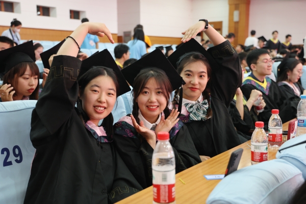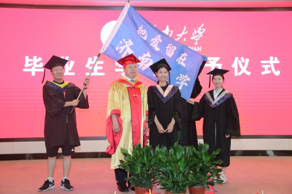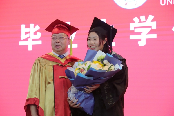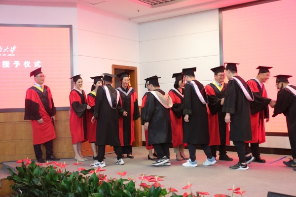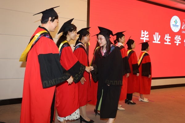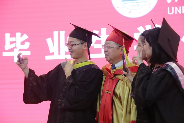 儀式上,劉宗明校長一一為校友撥穗并合影留念。學校教師代表和畢業生們一一握手,表示祝賀。每一次流蘇的撥動是對青春奮斗的見證,每一個深深地鞠躬是對良師的不盡感激,每一次快門的按下是對美好記憶的永久封存。今天,這場期待許久的儀式,在這個舞臺上得以如愿。