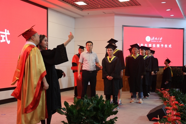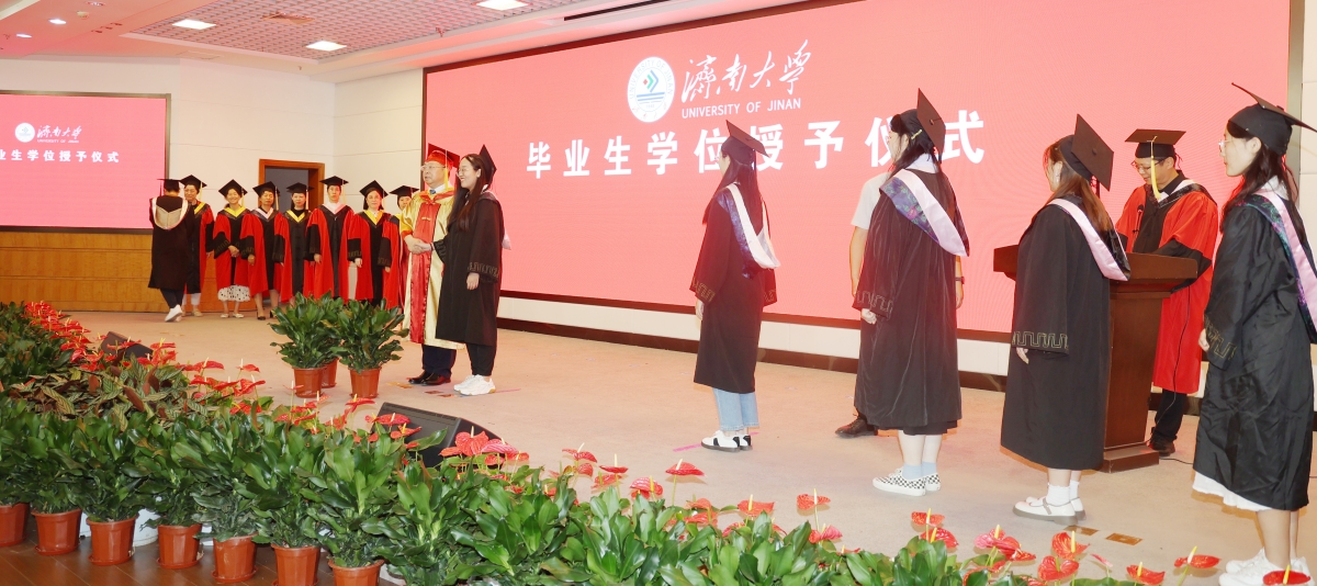 補授儀式,有諾必踐。為彌補因疫情影響未能參加學位授予儀式的畢業生,6月24日,濟南大學2020屆、2022屆畢業生學位授予儀式在學校第一學術報告廳舉行。這是一場有諾必踐的畢業儀式,也是一場雖遲必到的青春記錄。