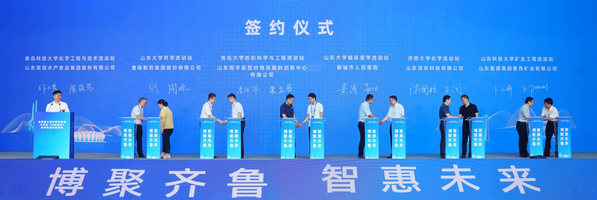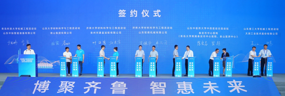 在前期充分醞釀和溝通的基礎上,學校分別與單縣湖西產業技術研究院、山東銘德機械有限公司、青州市建富齒輪有限公司、山東濱農科技有限公司在活動現場舉行了簽訂儀式,雙方一致同意在共建、共享、共贏的基礎上,建立博士后合作與青年人才成長交流機制,推動博士后科研合作和創新成果轉化落地。同時,學校還與山東艾孚特、濟南圣泉集團、寶勝電纜、山東博奧克生物等53家公司就博士后平臺建設與人才需求合作進行了初步洽談交流。