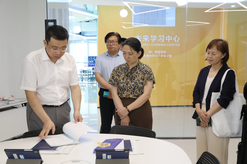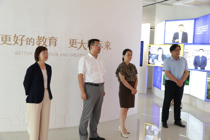 座談會前,商華一行參觀了企業與濟南市教育局共同打造的濟南教育創新中心,深入濟南教育數字化展館、未來學習中心、城市智慧教育運營中心,詳細了解了教育新型基礎設施及相關產品在城市教育數字化建設和教育改革評價中的應用情況,并看望了在企業工作的部分校友。