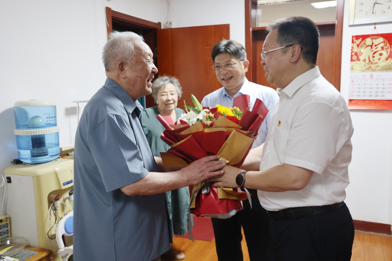 走訪優秀共產黨員時,校領導感謝他們為學校建設作出的貢獻,耐心詢問工作和生活情況,幫助他們排憂解難,認真聽取他們對學校高質量發展的意見建議。