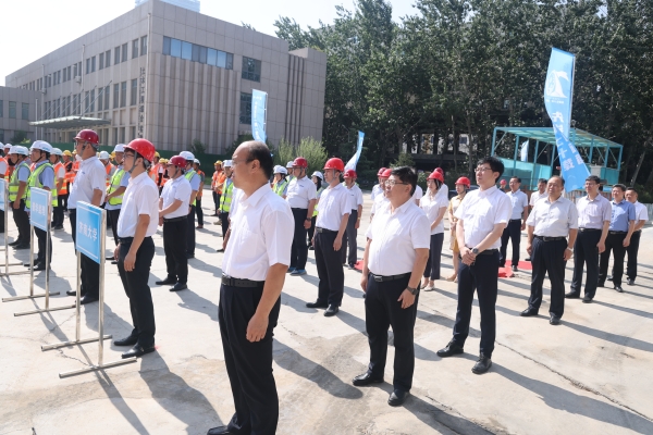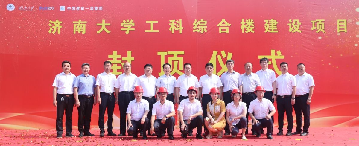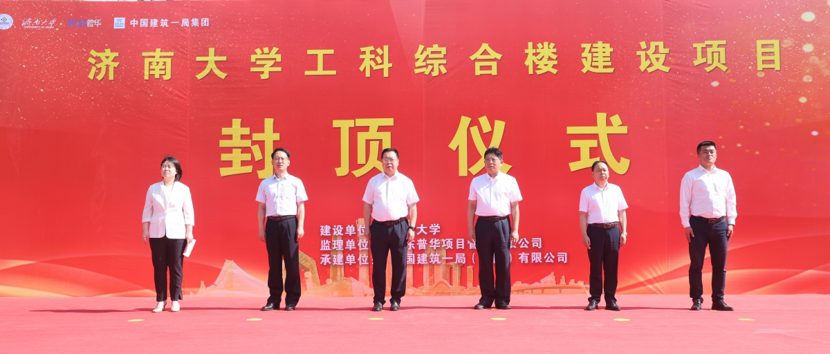 7月1日上午,濟南大學工科綜合樓建設項目舉行主體封頂儀式。學校校長劉宗明,黨委副書記楊景波,黨委常委、宣傳部長賈海寧,學校相關部門及基建工程管理全體人員,山東普華項目管理有限公司、中建一局一公司相關領導,全體監理、施工管理人員及工人代表,參加了封頂活動。