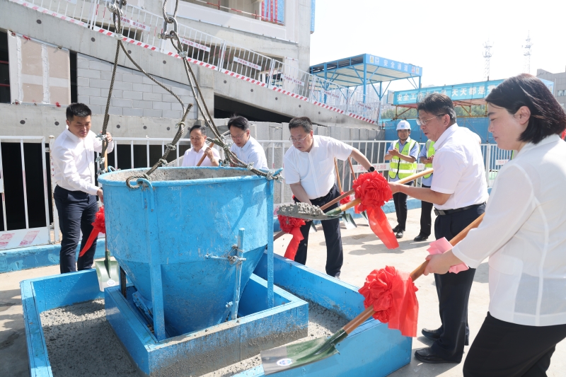 濟南大學工科綜合樓建設項目系2021年山東省教育強國推進工程,是集教學、科研、辦公為一體的綜合性建筑。規劃用地面積2.04公頃,總建筑面積7.93萬平方米,地上十六層,地下一層。自工科綜合樓項目獲批以來,學校高度重視,成立工程建設指揮部,建立定期調度機制,強化統籌協調,加快推進項目建設,在設計單位、監理單位、施工單位及相關部門的大力支持和精誠合作下,2022年3月6日項目開工建設,全體參建人員全力以赴,克服新冠疫情影響、高地下水等重重困難,歷時482天,圓滿完成工科綜合樓主體工程建設。