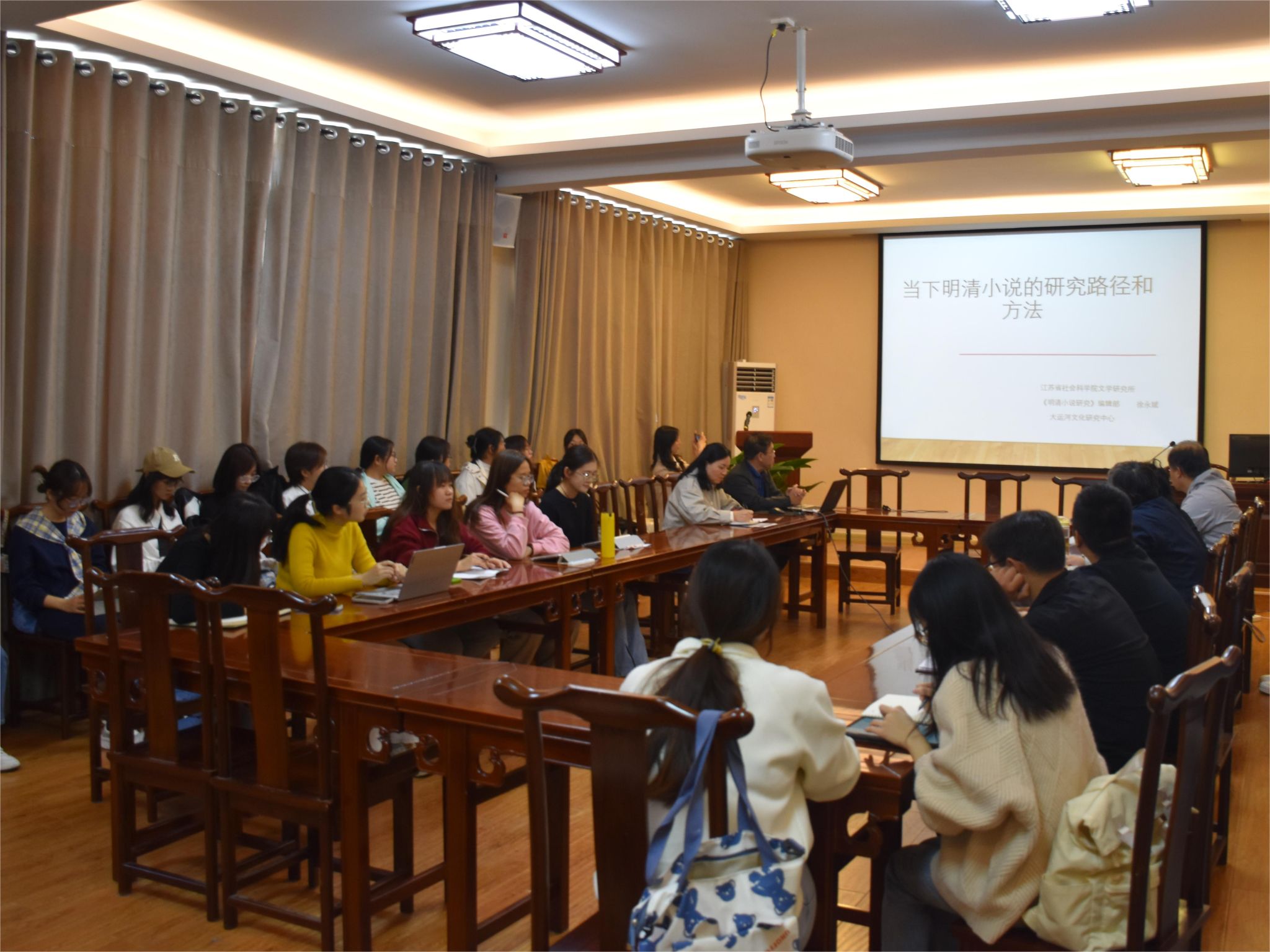 10月20日下午,文學(xué)院邀請(qǐng)江蘇省社會(huì)科學(xué)院文學(xué)研究所所長、《明清小說研究》主編、大運(yùn)河文化帶建設(shè)研究院文化研究中心主任徐永斌研作了題為《當(dāng)下明清小說的研究趨勢(shì)和方法》的學(xué)術(shù)講座,本次講座在第三教學(xué)樓舜耕書院舉行,相關(guān)專業(yè)師生總計(jì)60余人參加了此次講座,講座由院長范麗敏主持。