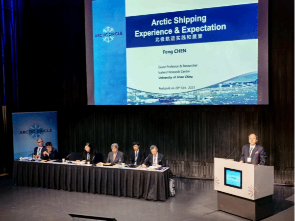 濟(jì)南大學(xué)冰島研究中心特聘研究員陳鋒先生(下圖右一)于20日在會(huì)上發(fā)表了 “北極航運(yùn)利用與展望”的演講,對(duì)我國參與北極航道運(yùn)輸情況以及北極航運(yùn)未來發(fā)展做了介紹和展望,受到與會(huì)專家、學(xué)者積極回應(yīng)。中國外交部、中國自然資源部極地辦、中國極地研究中心、上海國際問題研究院等與會(huì)領(lǐng)導(dǎo)對(duì)濟(jì)南大學(xué)的演講及對(duì)外方提問的答復(fù)表示充分肯定和贊賞!