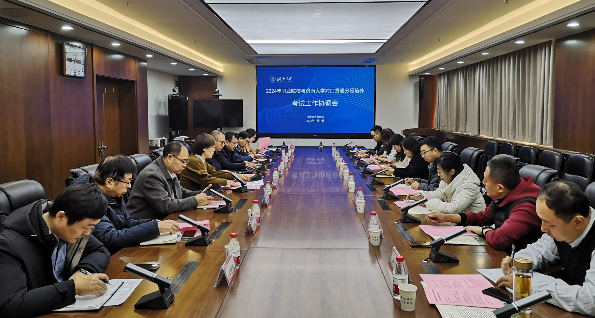 11月17日上午,學(xué)校召開“2024年職業(yè)院校與濟南大學(xué)對口貫通分段培養(yǎng)轉(zhuǎn)段考試工作協(xié)調(diào)會”,部署2024年對口貫通分段培養(yǎng)考試組織工作。山東商業(yè)職業(yè)技術(shù)學(xué)院、山東旅游職業(yè)學(xué)院、山東特殊教育職業(yè)學(xué)院和青島酒店管理職業(yè)技術(shù)學(xué)院等四所職業(yè)院校負責(zé)人,濟南大學(xué)紀委監(jiān)察室、教務(wù)處以及相關(guān)學(xué)院負責(zé)人參加會議。