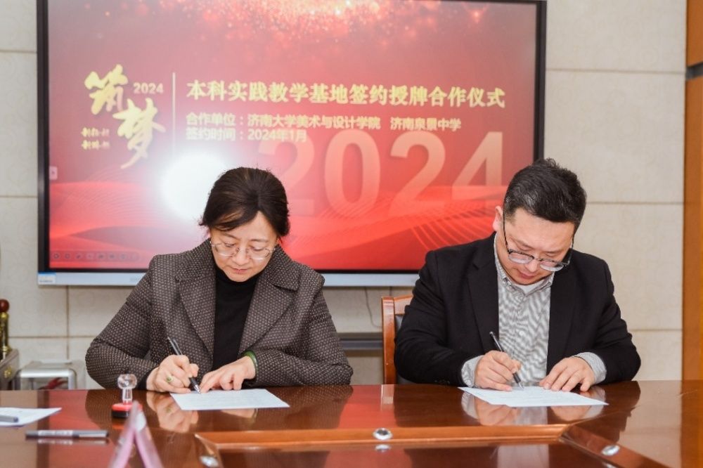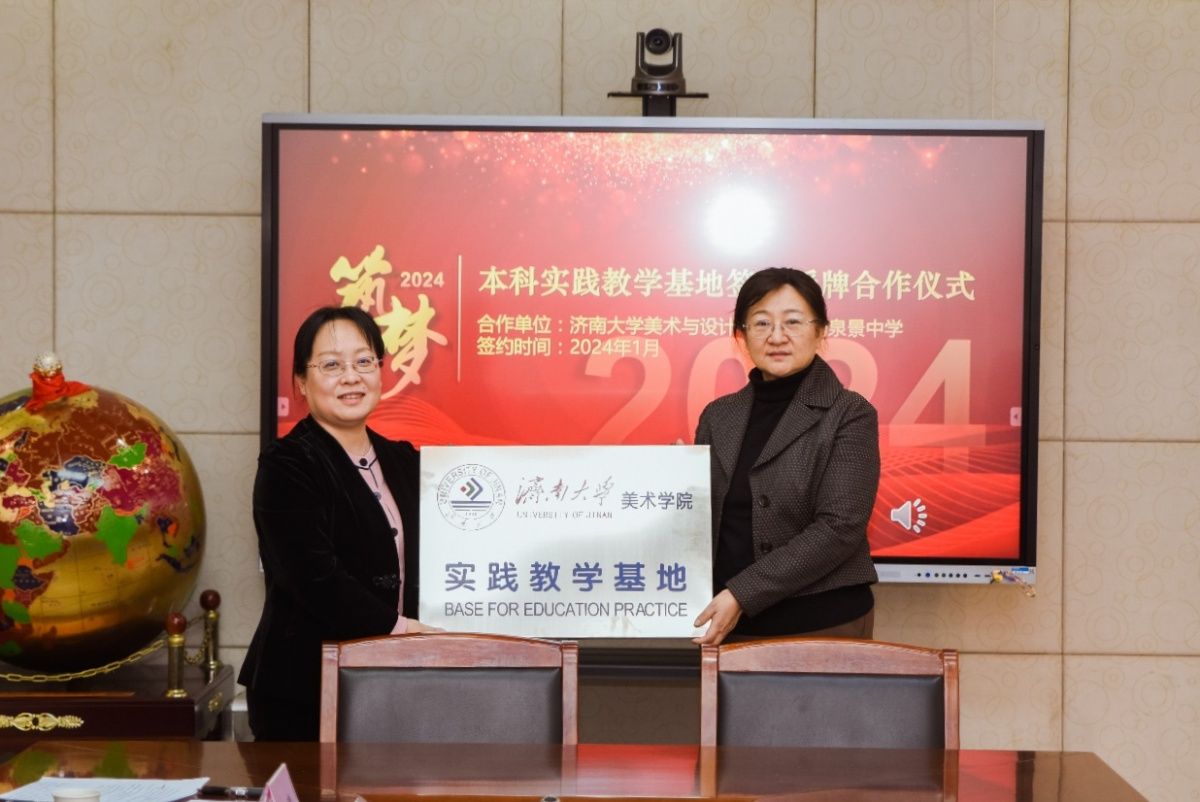 1月9日,濟(jì)南大學(xué)美術(shù)與設(shè)計(jì)學(xué)院與濟(jì)南泉景中學(xué)開展本科實(shí)踐教學(xué)基地授牌、簽約合作儀式,共同拉開兩校全面合作的序幕。濟(jì)南泉景中學(xué)校長(zhǎng)馮曉青、副校長(zhǎng)魏靖、主任李艷美和泉景中學(xué)和小學(xué)部美術(shù)組全體教師,濟(jì)南大學(xué)教務(wù)處副處長(zhǎng)兼師范教育管理辦公室主任張婷、美術(shù)與設(shè)計(jì)學(xué)院相關(guān)負(fù)責(zé)人、美術(shù)系負(fù)責(zé)人共同參加簽約儀式。