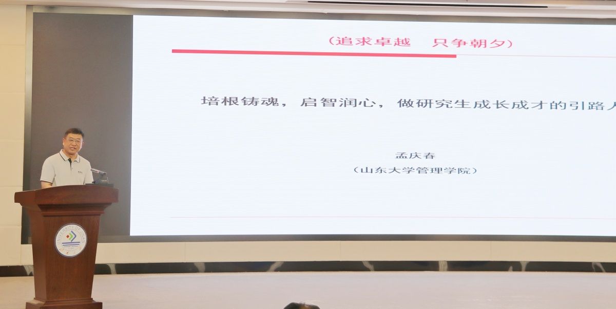孟慶春以《培根鑄魂,啟智潤心,做研究生成長成才的引路人》為題作專題講座。圍繞促進(jìn)研究生教育高質(zhì)量發(fā)展提出三方面建議:一是要強化思想引領(lǐng),落實立德樹人根本任務(wù),了解掌握研究生思想狀況,嚴(yán)格遵守科學(xué)道德和學(xué)術(shù)規(guī)范,把正確政治方向和價值導(dǎo)向融入教育和管理工作全過程;二是要堅持問題導(dǎo)向,開展富有價值的科學(xué)研究,緊跟時代,投身實踐,聚焦學(xué)術(shù),提升自我;三是要注重人文關(guān)懷,構(gòu)建和諧共生的導(dǎo)學(xué)關(guān)系,在生活層面給予細(xì)致關(guān)心,在職業(yè)發(fā)展層面做好價值觀引導(dǎo)。孟慶春結(jié)合典型案例,警醒研究生導(dǎo)師作為第一責(zé)任人必須明確崗位職責(zé)、立德修身、嚴(yán)謹(jǐn)治學(xué)、潛心育人,做學(xué)生的信仰之師、學(xué)問之師、品行之師。