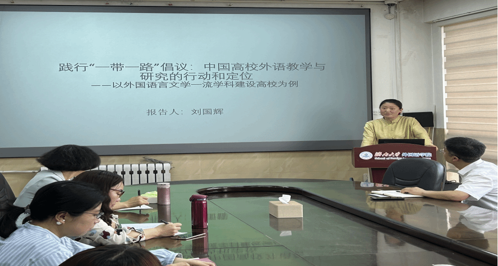 為提升外國(guó)語(yǔ)學(xué)院學(xué)術(shù)科研氛圍,激勵(lì)師生科研熱情,促進(jìn)學(xué)院一流學(xué)科建設(shè),5月14日下午,外國(guó)語(yǔ)學(xué)院認(rèn)知語(yǔ)言學(xué)團(tuán)隊(duì)于學(xué)院六樓會(huì)議室組織開展了“踐行“一帶一路”倡議:中國(guó)高校外語(yǔ)教學(xué)與研究的行動(dòng)和定位——以外國(guó)語(yǔ)言文學(xué)一流學(xué)科建設(shè)高校為例”學(xué)術(shù)沙龍講座。本次講座由外國(guó)語(yǔ)學(xué)院副院長(zhǎng)秦利民主持,邀請(qǐng)了劉國(guó)輝副教授作為主講人,學(xué)院教師和在讀研究生參加了本次講座。