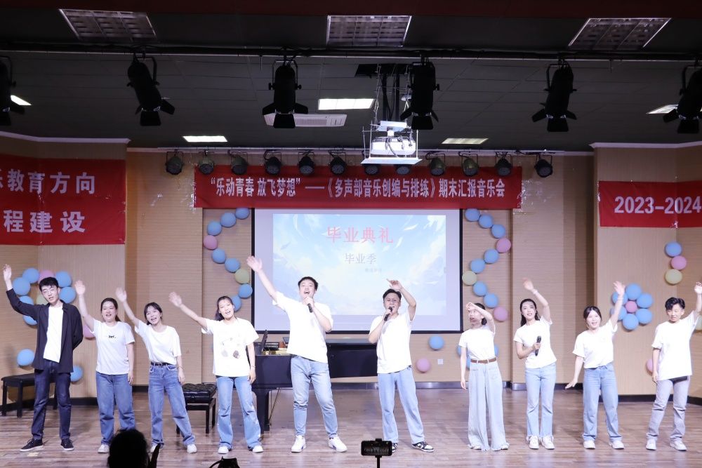 為培養(yǎng)具有理想信念、優(yōu)良職業(yè)素養(yǎng)的高層次應(yīng)用型音樂專門人才,提升研究生培養(yǎng)質(zhì)量,7月1日“樂動青春·放飛夢想”音樂學(xué)院成功舉辦藝術(shù)碩士音樂教育方向《多聲部音樂創(chuàng)編與排練》暨《綜合即興編創(chuàng)》協(xié)作類核心課程期末匯報音樂會。音樂學(xué)院副院長王建成,研究生院副院長仲倩,音樂學(xué)院副書記、副院長董曉寧,部分教師、研究生導(dǎo)師、全體研究生參加本次音樂會。