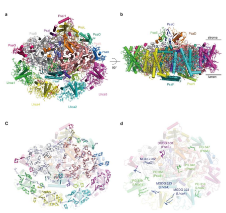 圖2:Fa PSI-LHCI復合物2.46-?分辨率的空間結構