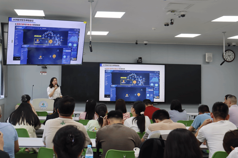 報(bào)告會(huì)上,劉洪霞通過(guò)“AI數(shù)字人課堂”等實(shí)例分析,闡述了人工智能如何與混合式教學(xué)深度融合、如何為傳統(tǒng)教學(xué)模式帶來(lái)革新,同時(shí)展示了人工智能技術(shù)在提升教學(xué)效率、個(gè)性化學(xué)習(xí)等方面的巨大潛力,為達(dá)成全面育人目標(biāo)提供了切實(shí)可行的策略。報(bào)告聚焦大學(xué)數(shù)學(xué)課程群知識(shí)圖譜的構(gòu)建,詳細(xì)解析了知識(shí)圖譜在梳理課程體系、促進(jìn)知識(shí)融合中的重要作用。為推進(jìn)數(shù)智賦能教學(xué),劉洪霞針對(duì)大學(xué)數(shù)學(xué)教學(xué)的新范式提出了若干前沿探索。