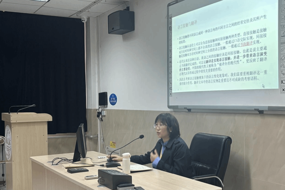 薛桂譚以“語(yǔ)料庫(kù)翻譯學(xué)視域下的語(yǔ)言接觸研究”為主題,從語(yǔ)料庫(kù)翻譯學(xué)的視角切入,生動(dòng)介紹了語(yǔ)言接觸研究的重要性及其現(xiàn)實(shí)意義。她結(jié)合自身的科研經(jīng)驗(yàn),強(qiáng)調(diào)研究方面要注重搜集一手資料,研究方法注重語(yǔ)內(nèi)對(duì)比與語(yǔ)際對(duì)比相結(jié)合的方法和基于語(yǔ)料庫(kù)的語(yǔ)言接觸研究方法,并結(jié)合定量研究方法進(jìn)行數(shù)據(jù)支持和語(yǔ)料搜集,通過(guò)漢日語(yǔ)言接觸的實(shí)證研究,揭示了日語(yǔ)對(duì)漢語(yǔ)語(yǔ)法的影響,修正了我們對(duì)某些漢語(yǔ)語(yǔ)法特征的認(rèn)識(shí),引發(fā)了現(xiàn)場(chǎng)聽(tīng)眾的廣泛共鳴與思考。講座內(nèi)容深入淺出,理論結(jié)合實(shí)際,為與會(huì)者帶來(lái)了一場(chǎng)充滿(mǎn)啟發(fā)性的學(xué)術(shù)盛宴。