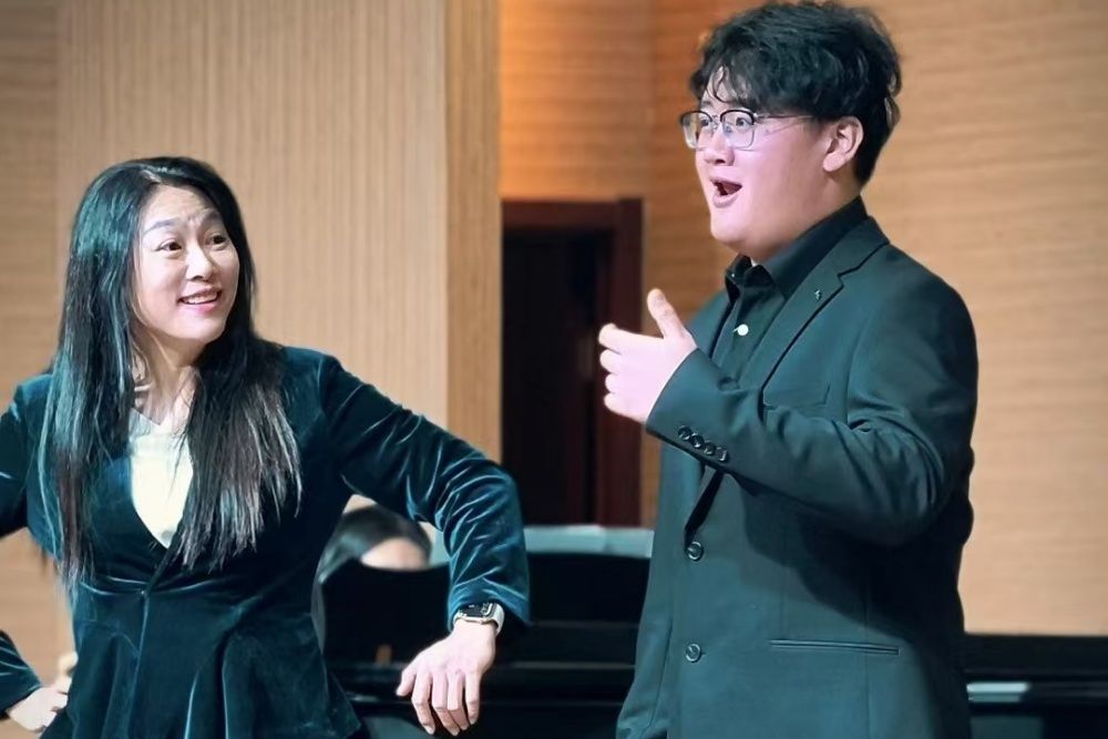 講座期間,陳冠馥悉心指導(dǎo)了六名學(xué)生,她認真傾聽學(xué)生們的演唱,針對每位學(xué)生的發(fā)聲技巧、情感表達以及舞臺表現(xiàn)逐一進行細致入微的點評與糾正。她對同學(xué)們的演唱作品的分析細膩到位,如軀體的放松、用力及情感的表達等,從氣息的控制到音符的精準(zhǔn)把握,從對歌曲內(nèi)涵的理解到肢體語言的運用,陳冠馥都毫無保留地分享自己的經(jīng)驗與見解,以生動的示范引導(dǎo)學(xué)生們領(lǐng)悟音樂表演的精髓,助力他們在藝術(shù)之路上不斷成長與進步。