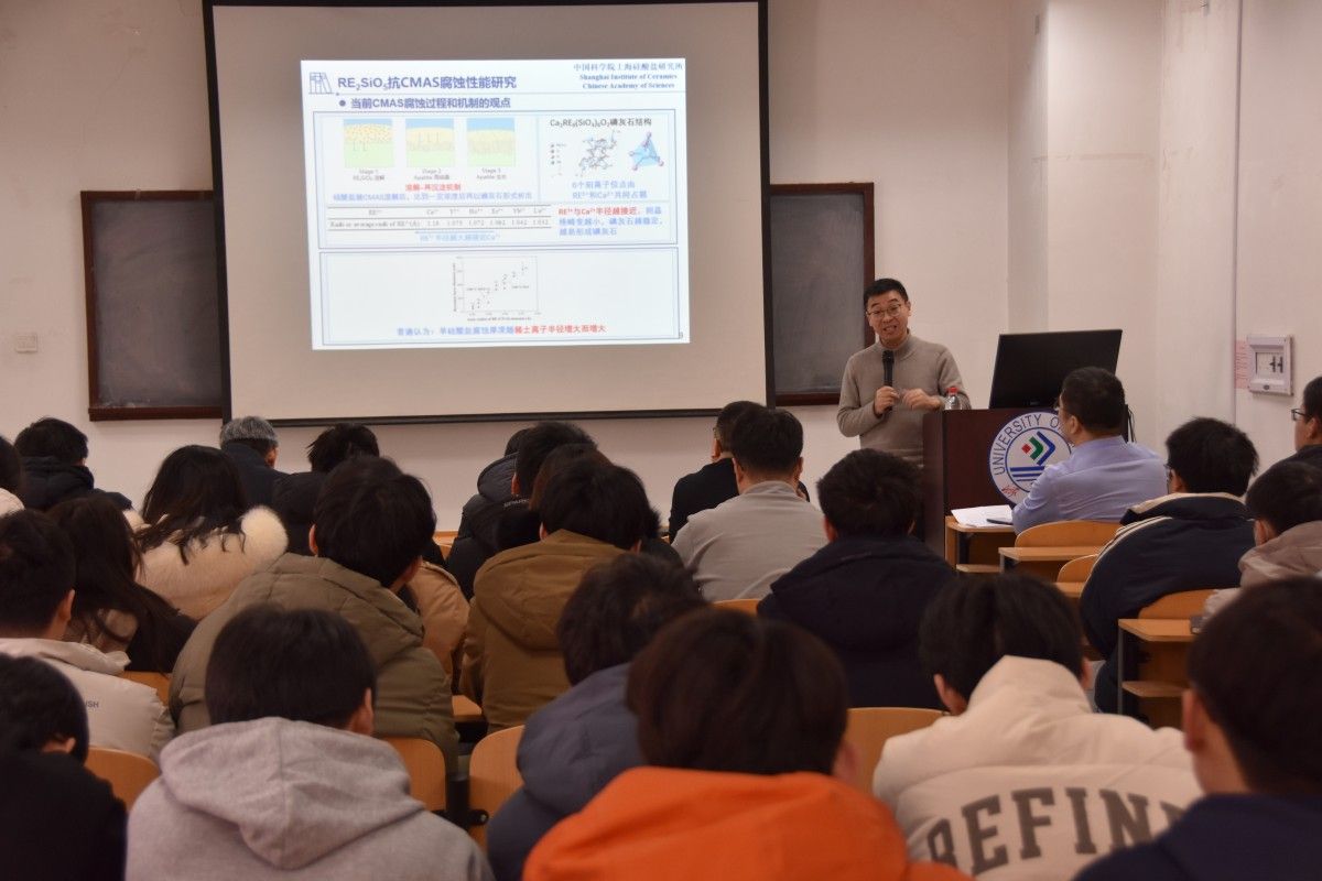 曾毅以高端航空發(fā)動(dòng)機(jī)保護(hù)涂層的掃描電子顯微鏡觀測與研究視角開啟講座,從掃描電鏡應(yīng)用、技術(shù)研究、設(shè)備開發(fā)等三個(gè)維度,報(bào)告了掃描電鏡技術(shù)不僅可獲取材料表面形貌、元素組成及晶體結(jié)構(gòu)等信息,還可用于材料動(dòng)態(tài)變化等方面的研究。同時(shí),他還介紹了目前中國科學(xué)院上海硅酸鹽研究所在掃描電鏡關(guān)鍵裝備開發(fā)方面取得的成績,為在場的130余名師生呈現(xiàn)了一場融合理論深度與實(shí)踐前瞻的學(xué)術(shù)盛宴。