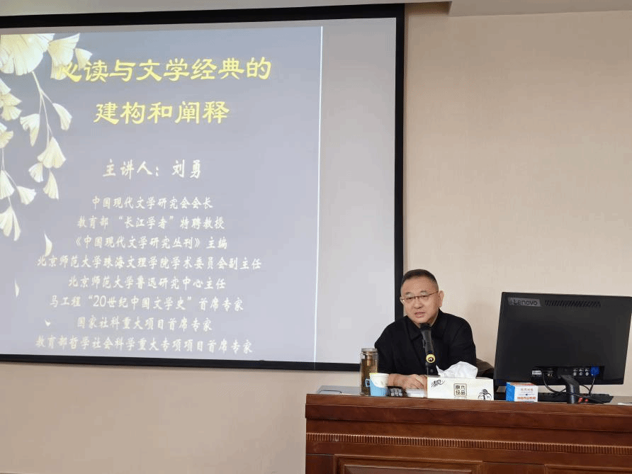 劉勇教授以近期引發(fā)熱議的DeepSeek人工智能為切入點(diǎn),深刻指出:“在AI時(shí)代,我們要學(xué)該學(xué)的東西,做該做的事情。”他進(jìn)一步強(qiáng)調(diào),人工智能或許能夠替代諸多程式化的工作,但永遠(yuǎn)無(wú)法替代思想的獨(dú)特性和個(gè)性化的精神創(chuàng)造。這一觀點(diǎn)引發(fā)了在場(chǎng)師生的深度思考。隨后,劉勇教授通過(guò)對(duì)中國(guó)現(xiàn)當(dāng)代文學(xué)經(jīng)典作品的深入剖析,生動(dòng)詮釋了這一觀點(diǎn)。他以魯迅的《藤野先生》為例,指出作品中蘊(yùn)含的不僅是簡(jiǎn)單的師生情誼,更折射出魯迅對(duì)弱者的深切同情。在解讀巴金的《家》時(shí),劉勇教授強(qiáng)調(diào),作品通過(guò)對(duì)高家的解構(gòu),實(shí)現(xiàn)了對(duì)現(xiàn)代文學(xué)中“家”這一典型意象的建構(gòu)。同時(shí),劉勇教授還著重分析了孫犁和余華的創(chuàng)作特色。他指出,孫犁低調(diào)內(nèi)斂的創(chuàng)作風(fēng)格背后,是對(duì)生活本質(zhì)的深刻把握,而余華作品中“情緣重于血緣”的現(xiàn)代觀念,則展現(xiàn)了作家對(duì)當(dāng)代社會(huì)情感結(jié)構(gòu)的獨(dú)特思考。