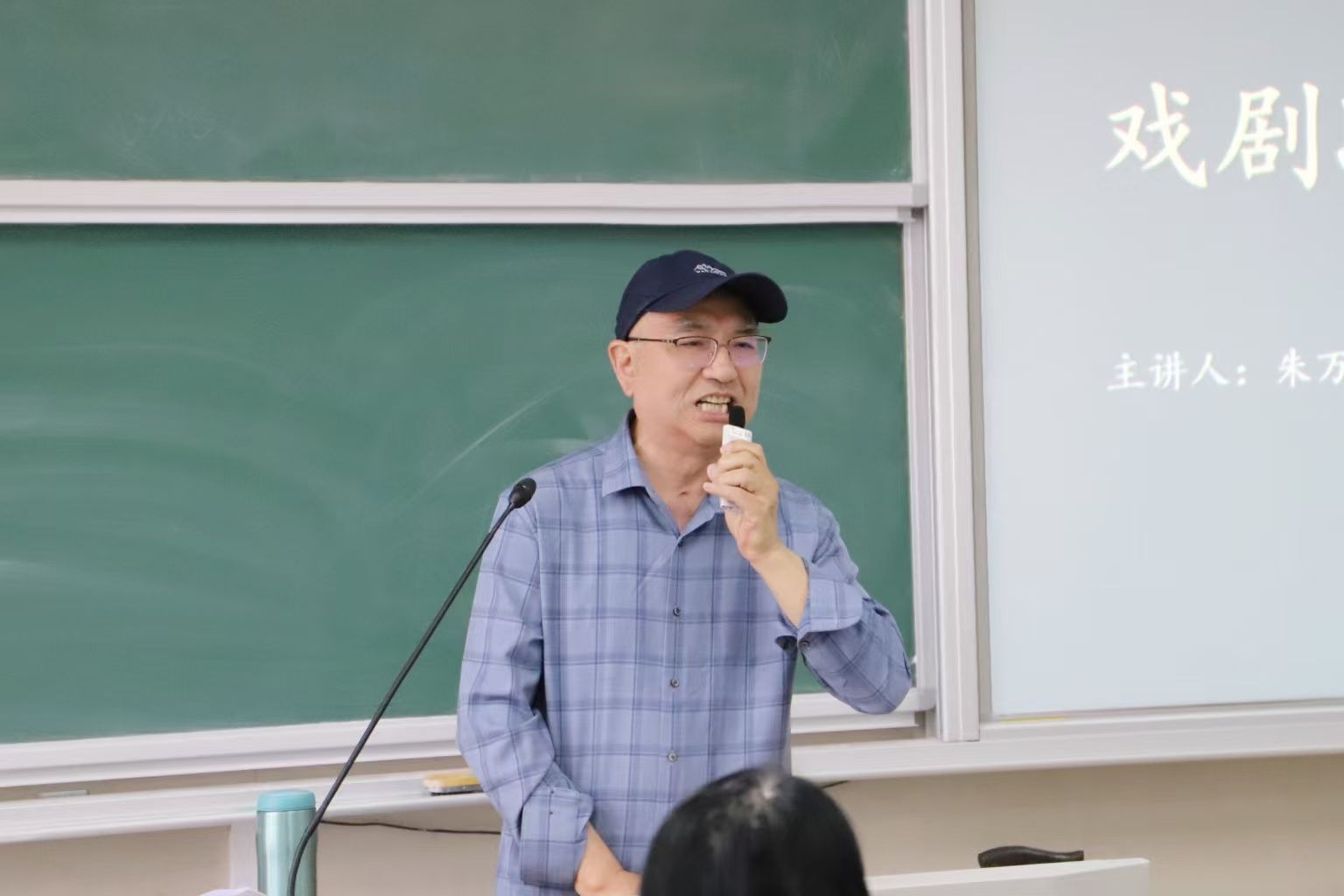 講座的第三部分,朱萬曙教授通過播放其親自編排的廬劇《包公打舅》和黃梅戲《初心》的片段,生動展示了如何有效、巧妙地“組織”戲劇沖突,如《包公打舅》之“一勸二嚇三替”。他結(jié)合片段內(nèi)容,講解了戲劇沖突在舞臺呈現(xiàn)中的具體運(yùn)用,使理論與實(shí)踐緊密結(jié)合,贏得了現(xiàn)場師生的陣陣掌聲。