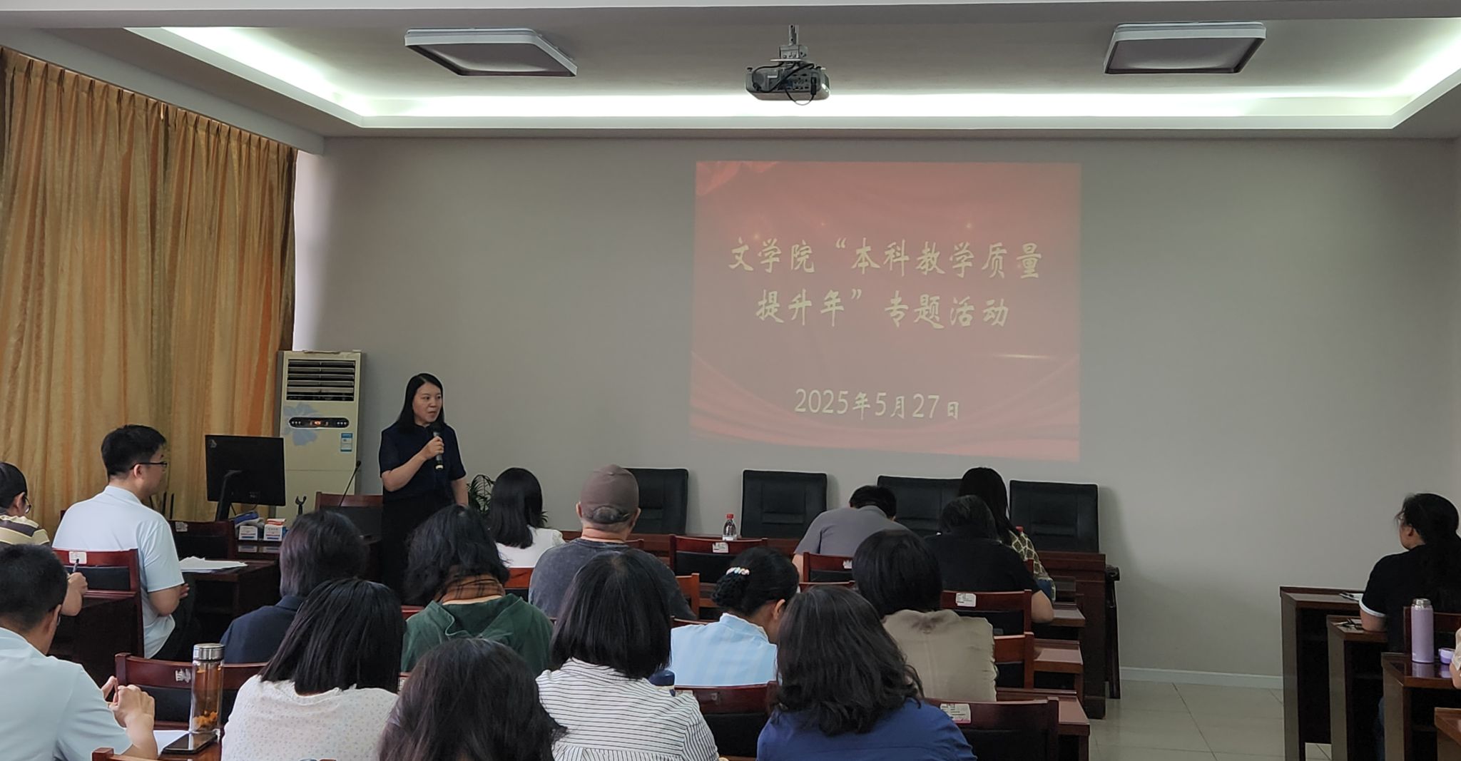 為進(jìn)一步提升學(xué)院本科教學(xué)質(zhì)量,落實學(xué)校“本科教學(xué)質(zhì)量提升年”活動方案,5月27日下午,文學(xué)院召開本科教學(xué)督導(dǎo)反饋會暨“本科教學(xué)質(zhì)量提升年”專題教學(xué)活動。教務(wù)處副處長、教學(xué)質(zhì)量與評估辦公室副主任張杰,本科教學(xué)督導(dǎo)組組長胡麗華,學(xué)院領(lǐng)導(dǎo)班子及全體教職工參加會議。會議由學(xué)院院長范麗敏主持。