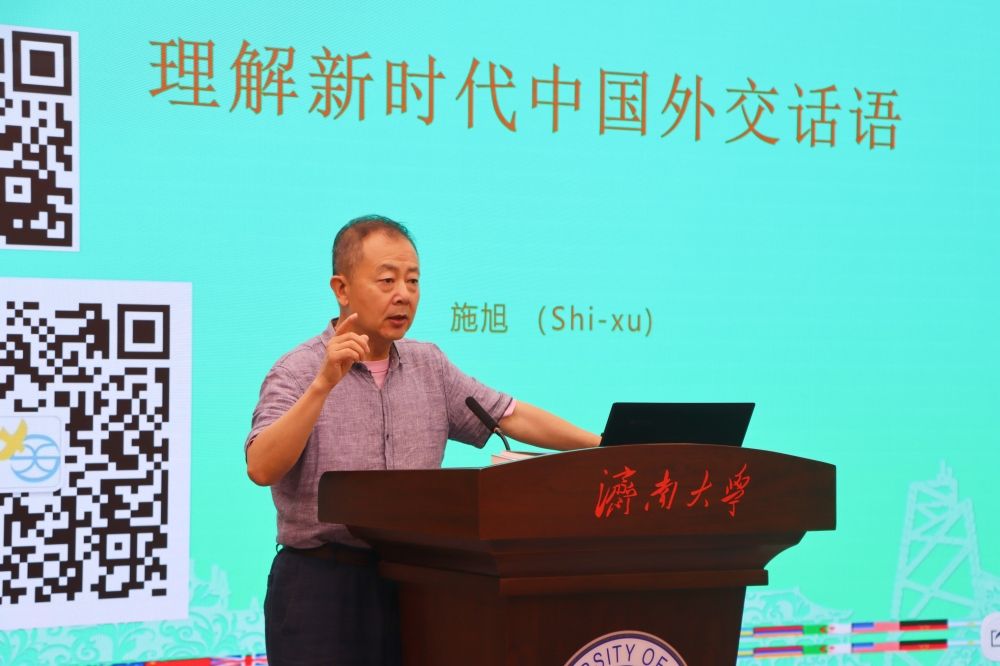 施旭以“理解新時代中國外交話語”為主題,分享了“當代中國話語研究”和“文化話語研究”的特點,并總結了當代中國話語理論。他指出,中國話語體系中的整體全面、辯證聯(lián)系、平衡和諧等思想和交際特質,是中國和平外交的關鍵元素,造就了“和而不同”的新時代中國特色大國外交戰(zhàn)略。新時代中國話語戰(zhàn)略旨在消解“中國威脅”論,逆轉新冷戰(zhàn)趨勢,引領全球治理,加快“人類命運共同體”建設,其任務是弘揚中國話語體系優(yōu)良元素,加強全球傳播話語體系建設,促進文化多元共生,推動中外話語交流,讓不同文明以交流替代沖突。