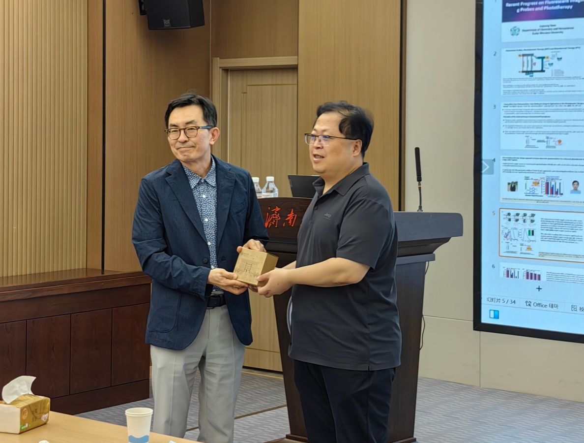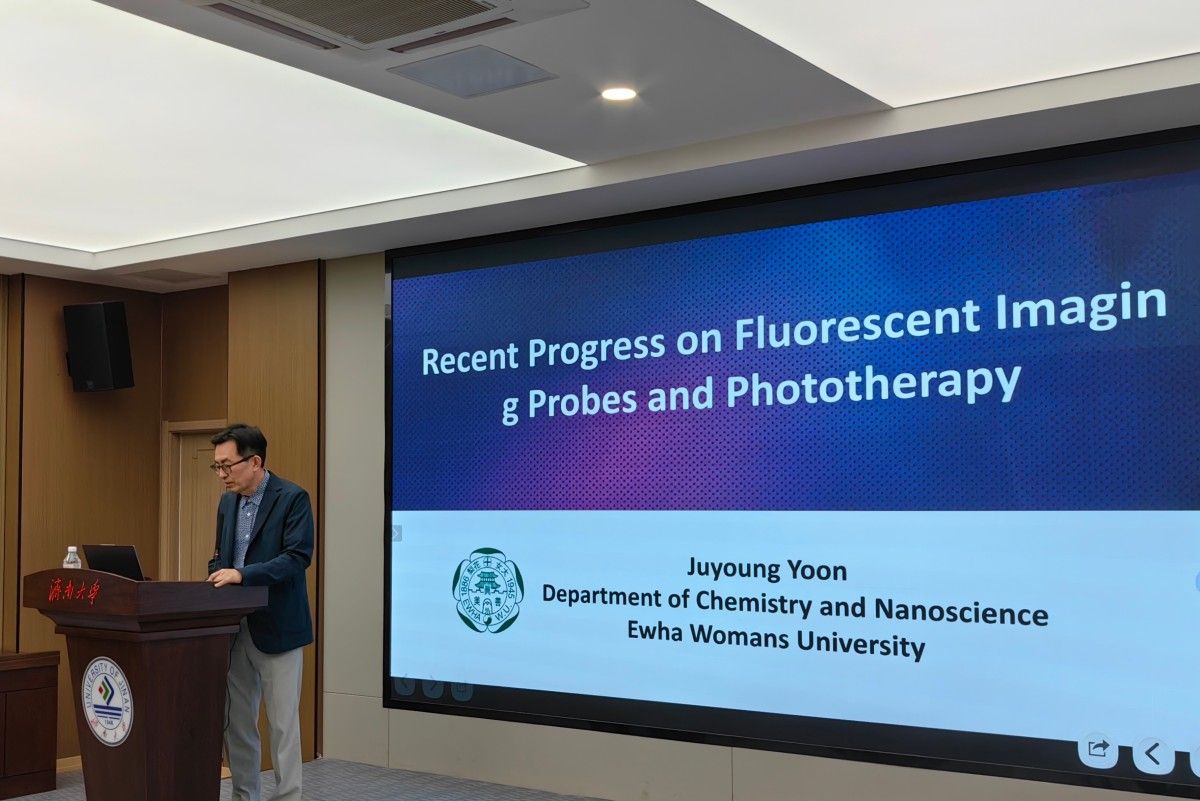 Juyoung Yoon教授的報(bào)告題目為“Recent progress on fluorescent imaging probes and phototherapy”,他詳細(xì)介紹了熒光探針、光動(dòng)力治療和光熱治療方面的重要進(jìn)展,分享了他們?cè)谛滦蜔晒獬上裉结槨⒅悄芄獐熂{米材料領(lǐng)域的創(chuàng)新成果。報(bào)告內(nèi)容條分縷析,高屋建瓴,為該領(lǐng)域的研究帶來了新的思路和方向。