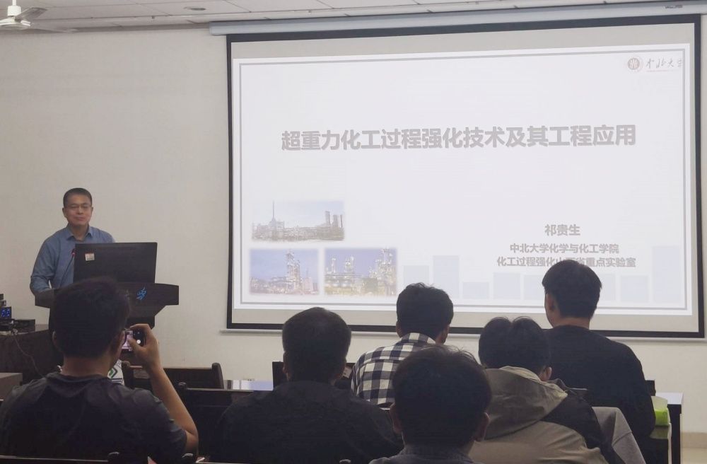 祁貴生教授作了題為“超重力化工過程強化技術(shù)及其工程應(yīng)用”的學(xué)術(shù)報告。他首先從化工基本原理入手,系統(tǒng)闡述了超重力技術(shù)的核心概念、發(fā)展歷程及其在工業(yè)中的基礎(chǔ)應(yīng)用價值,并深入淺出地解析了超重力場下的流體動力學(xué)、傳質(zhì)和傳熱機制,強調(diào)了超重力技術(shù)在提升化工過程效率中的關(guān)鍵作用。隨后,祁貴生教授結(jié)合課題組近年來研究成果,重點介紹了超重力反應(yīng)器的設(shè)計優(yōu)化、催化機理研究及性能驗證,以及超重力技術(shù)在煤化工、冶金、化肥等多個工業(yè)工程領(lǐng)域的經(jīng)典應(yīng)用案例;通過實驗數(shù)據(jù)和模型模擬,展示了超重力技術(shù)在節(jié)能減排、資源高效利用方面的突破性進展,展望了其未來在智能化集成、綠色化工拓展等領(lǐng)域的發(fā)展方向。祁貴生教授的報告內(nèi)容豐富、視角多維,為我校研究生、青年教師等青年學(xué)者師生提供了前沿的科研思路和行業(yè)洞見。最后,祁貴生教授鼓勵青年學(xué)者要加強跨學(xué)科合作,積極投身國產(chǎn)技術(shù)創(chuàng)新,將研究成果轉(zhuǎn)化為實際應(yīng)用,推動我國化工行業(yè)的自主創(chuàng)新與競爭力提升,應(yīng)對全球化工安全與可持續(xù)發(fā)展的挑戰(zhàn)。