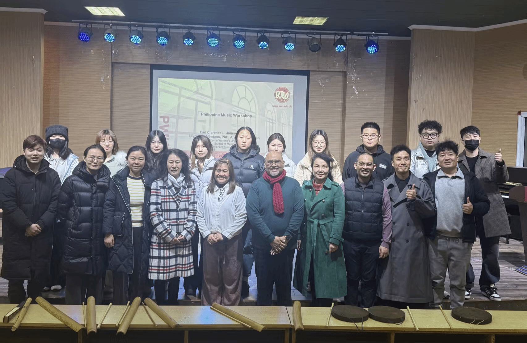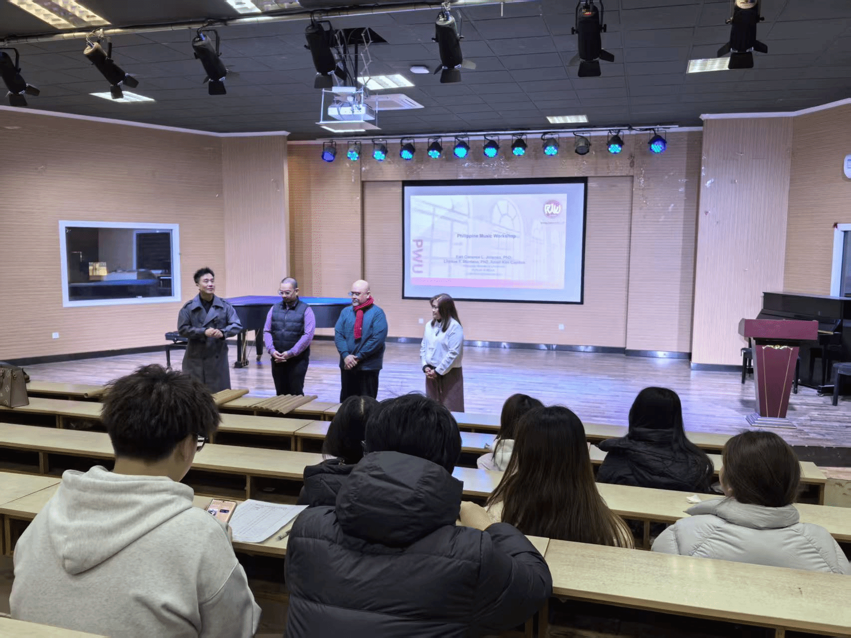 11月26日,濟南大學音樂學院迎來了一場跨越國界的音樂學術(shù)交流會,菲律賓女子大學音樂學院院長、博士研究生導師Earl Clarence L.Jimenez教授,博士研究生導師Lilymae F. Montano教授以及碩士研究生導師Amiel Kim Quan Capitan教授一行三人來訪交流,以“菲律賓傳統(tǒng)音樂工作坊”為主題開展系列講座交流活動,展開了一場菲律賓民族音樂與中國音樂的對話,為學院師生帶來了飽含學術(shù)深度與藝術(shù)魅力的音樂盛宴。