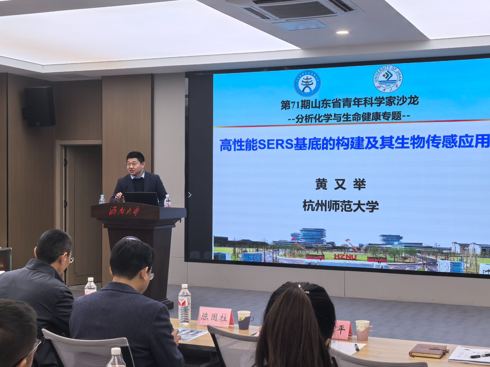 11月22日,由山東省科學(xué)技術(shù)協(xié)會(huì)指導(dǎo),山東省青年科學(xué)家協(xié)會(huì)、山東省科技工作者服務(wù)中心主辦,濟(jì)南大學(xué)化學(xué)化工學(xué)院承辦的第71期山東省青年科學(xué)家沙龍——分析化學(xué)與生命健康專題在濟(jì)南大學(xué)成功舉辦。山東省科協(xié)人才聯(lián)絡(luò)部部長(zhǎng)、山東省青年科學(xué)家協(xié)會(huì)秘書長(zhǎng)楊西博,來自中國(guó)科學(xué)院煙臺(tái)海岸帶研究所、山東大學(xué)、杭州師范大學(xué)、青島大學(xué)等高校的高層次青年學(xué)者出席活動(dòng),學(xué)??萍继帯⒒瘜W(xué)化工學(xué)院負(fù)責(zé)人以及化學(xué)化工學(xué)院、生物科學(xué)與技術(shù)學(xué)院、前沿交叉科學(xué)研究院等單位相關(guān)專業(yè)領(lǐng)域教師、研究生等120余人參加了沙龍活動(dòng)。開幕式由科技處處長(zhǎng)顏梅主持。