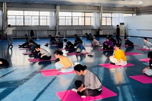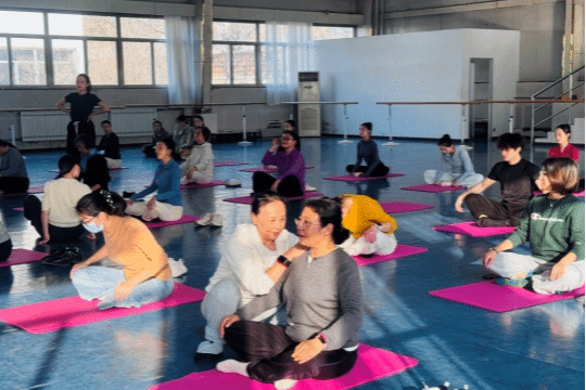 工作坊緊扣“不止是舞蹈”的主題,聚焦教師群體,通過專業(yè)指導(dǎo)助力教學(xué)儀態(tài)提升,為來自各個學(xué)院和部門的老師們帶來了沉浸式身體美學(xué)體驗。劉桂華老師從基礎(chǔ)發(fā)力點切入,細致講解了脊柱直立、肩頸舒展、手臂線條延伸的規(guī)范發(fā)力,并通過手把手的示范與動作糾正,引導(dǎo)教師們對后背的肌肉群進行科學(xué)訓(xùn)練。結(jié)合芭蕾基礎(chǔ)訓(xùn)練對腓腸肌、腘繩肌、股四頭肌進行了針對性練習(xí),使下肢更具有柔韌性?;顒硬粌H著眼于體態(tài)塑形與身心康養(yǎng)的結(jié)合,更有力地助力教師夯實基于良好體態(tài)的專業(yè)教態(tài)基礎(chǔ),深入理解身體美學(xué)的核心內(nèi)涵。參與教師們熱情高漲,全程積極跟練,在實踐中探索美育融入課堂教學(xué)的新路徑。