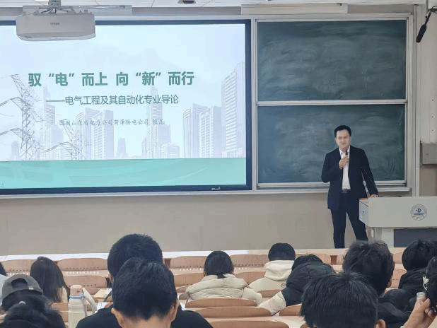 12月12日下午,自動化與電氣工程學(xué)院2025級“啟航講堂”第五講在第十一教學(xué)樓舉辦。本次講堂邀請國網(wǎng)菏澤供電公司黨委書記錢昆擔(dān)任主講嘉賓,給2025級新生帶來《馭“電”而上,向“新”而行》的分享報告。