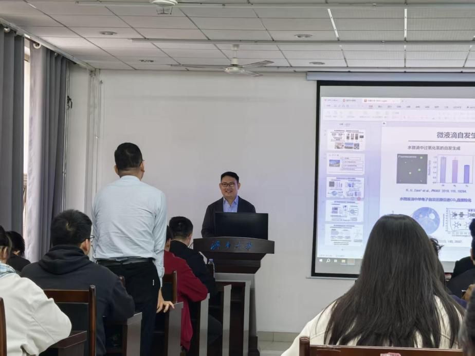 隨后的現(xiàn)場(chǎng)交流環(huán)節(jié),氣氛十分熱烈。與會(huì)師生就報(bào)告中涉及的界面電荷轉(zhuǎn)移機(jī)制、鈀氫電催化界面等前沿問(wèn)題,與范鳳茹教授進(jìn)行了深入而活躍的討論。范鳳茹教授對(duì)提問(wèn)逐一進(jìn)行了詳細(xì)解答,現(xiàn)場(chǎng)互動(dòng)頻繁,思維碰撞不斷。本次報(bào)告內(nèi)容前沿、見(jiàn)解深刻,現(xiàn)場(chǎng)交流充分,極大地拓展了學(xué)院師生對(duì)表界面科學(xué)與能源催化領(lǐng)域的理解。