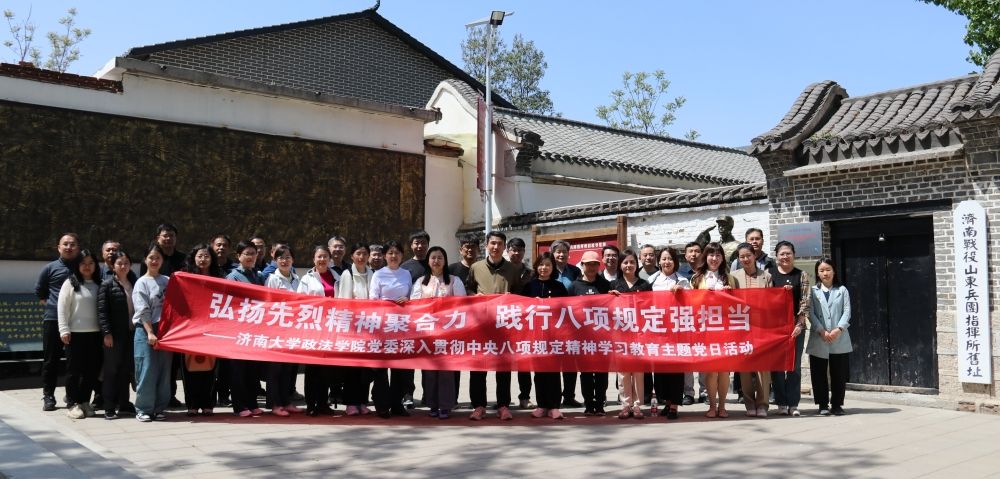 為扎實(shí)開展深入貫徹中央八項(xiàng)規(guī)定精神學(xué)習(xí)教育,緬懷革命先烈,傳承紅色基因,凝聚奮進(jìn)力量,4月15日,政法學(xué)院黨委赴濟(jì)南戰(zhàn)役山東兵團(tuán)指揮所舊址開展“弘揚(yáng)先烈精神聚合力 踐行八項(xiàng)規(guī)定強(qiáng)擔(dān)當(dāng)”學(xué)習(xí)教育主題黨日活動(dòng)。學(xué)院領(lǐng)導(dǎo)班子成員,各黨支部書記、委員,教師黨員代表參加活動(dòng)。