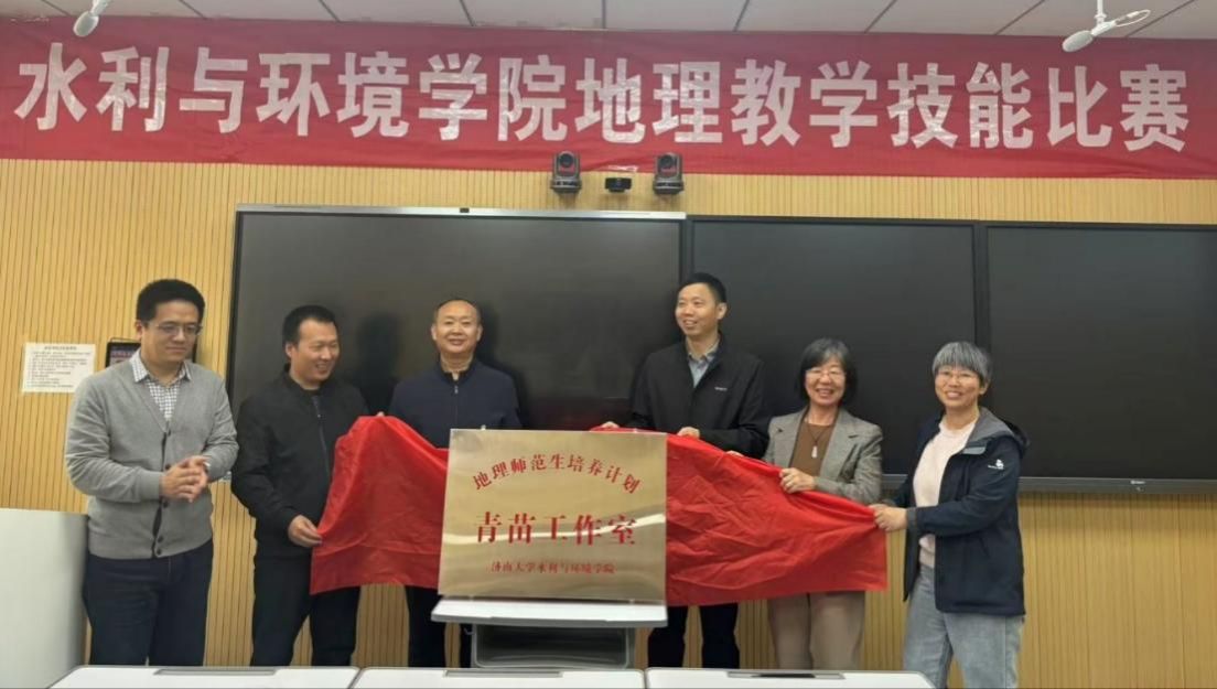 賽后,學(xué)院副院長龐桂斌主持了濟(jì)南大學(xué)水利與環(huán)境學(xué)院"青苗工作室"揭牌儀式。青苗工作室將作為地理師范生教學(xué)能力提升的重要平臺(tái),通過名師指導(dǎo)、教學(xué)研討、技能培訓(xùn)等方式,全方位提升同學(xué)們的教學(xué)素養(yǎng),助力師范生成長。