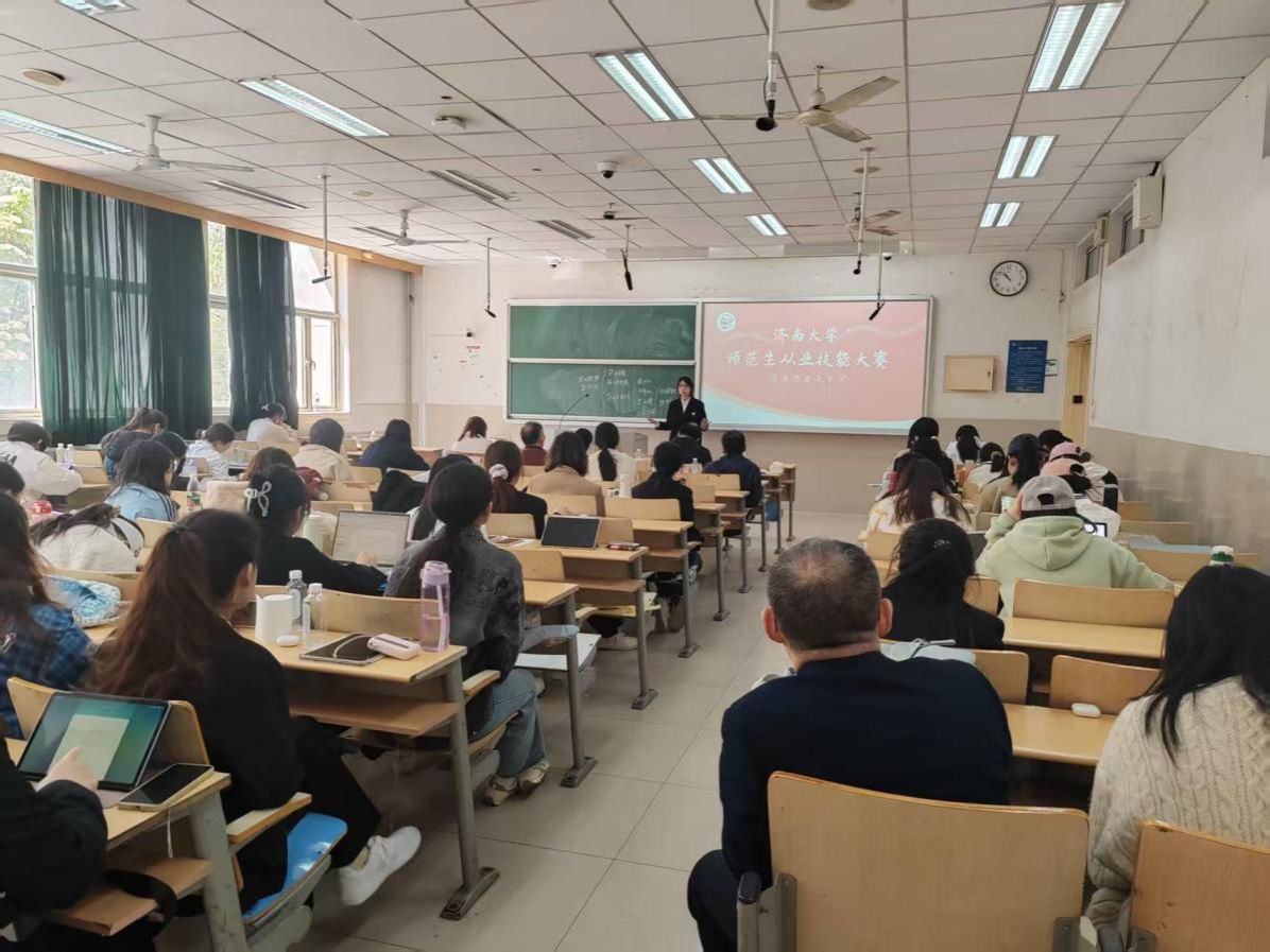 為全面提升思想政治教育專業(yè)師范生核心素養(yǎng),培養(yǎng)新時代高素質思政課教師隊伍,4月12日—4月13日,馬克思主義學院舉辦師范生從業(yè)技能大賽。特邀山東省教育科學研究院張彩霞、濟南市教育教學研究院黃萬強和山東省濟南實驗初級中學崔新喜擔任校外評委。