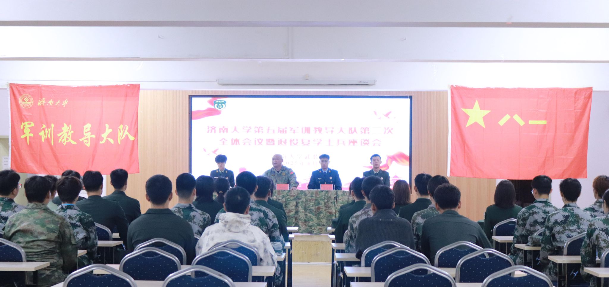 當迷彩綠與書香相遇,一場關(guān)于責任與成長的接力正在濟大校園上演。近日,濟南大學第五屆軍訓教導大隊全體會議暨退役復學士兵座談會如期舉行。這場精心籌備的交流會,既有對軍旅生涯的誠摯致敬,也有對校園生活的暖心指引。政策解讀、經(jīng)驗分享、心理輔導、紀念儀式……多重環(huán)節(jié)交織,為退役士兵們架起從軍營到校園的橋梁。