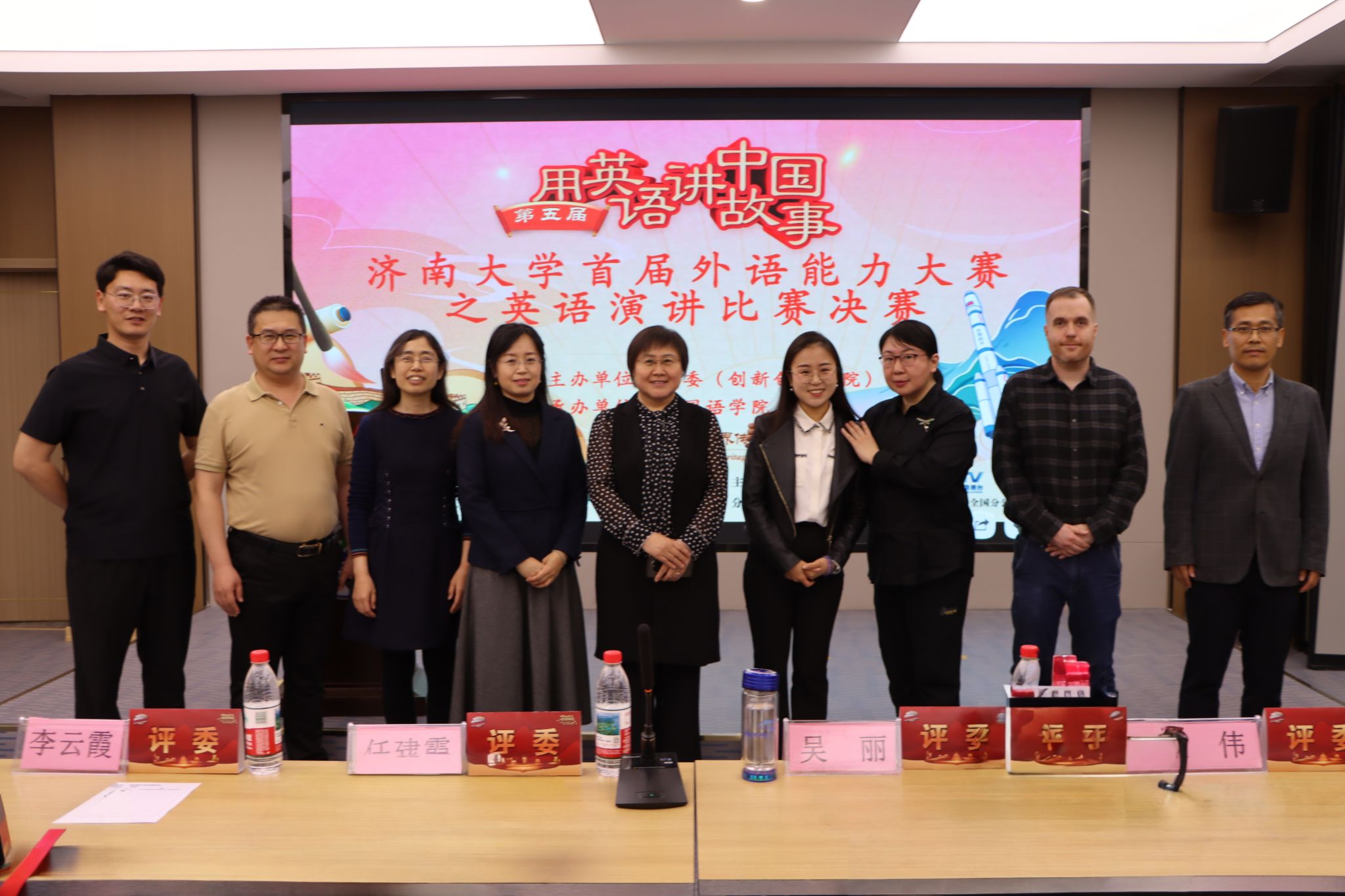 4月27日,由共青團(tuán)濟(jì)南大學(xué)委員會(huì)主辦,外國語學(xué)院承辦的濟(jì)南大學(xué)首屆外語能力大賽之“用英語講中國故事”演講比賽舉辦。本次比賽邀請(qǐng)了外國語學(xué)院吳麗、李云霞、程偉、鄭婷、劉琳、外籍教師Will和新航道濟(jì)南學(xué)校資深講師、2018屆畢業(yè)生校友任建霞擔(dān)任評(píng)委。外國語學(xué)院副院長王勇、新航道濟(jì)南學(xué)校市場部經(jīng)理李強(qiáng)出席活動(dòng)。