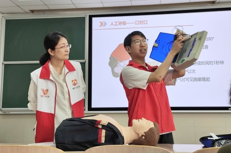 在活動延伸陣地中,益救應急協會積極參加校園救援知識培訓,先后為自動化與電氣工程學院、文化和旅游學院、管理科學與工程學院等近600名2024級新生進行心肺復蘇、AED除顫儀使用、海姆立克急救法的培訓,并以國家減災網權威科普資源為依托,系統梳理、深度挖掘應急安全知識,策劃并組織開展“防災減災知識競賽”,取得了廣泛的技能普及和教育效果。