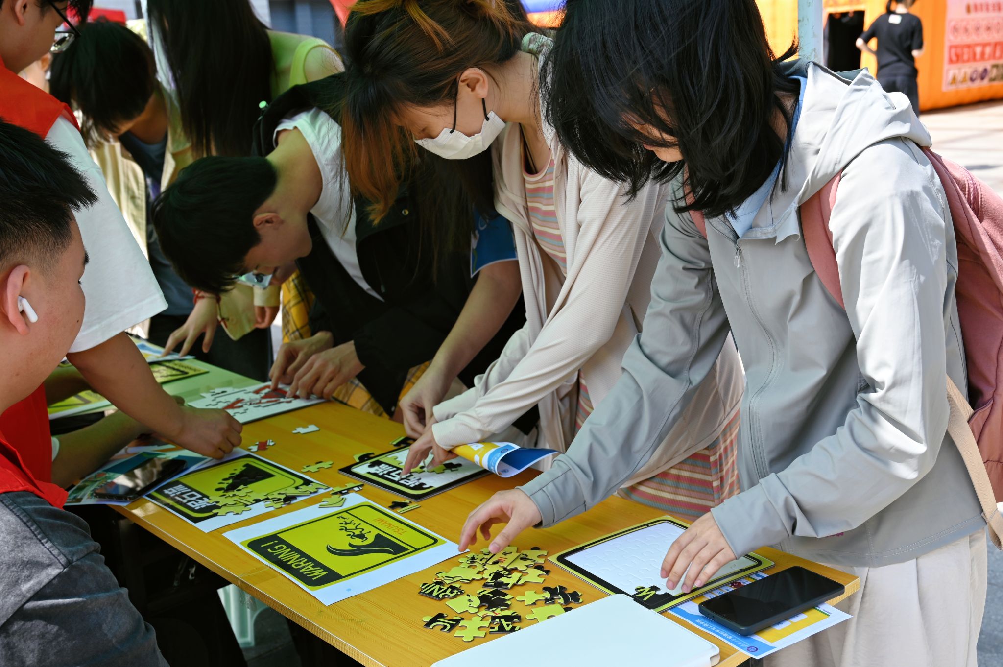 在經管樓廣場前,益救應急協會精心設置救災救援裝備展示、場景應急模擬實訓、智趣應急知識強化三大沉浸式教育展區(qū)。英雄山消防站指戰(zhàn)員逐一講解生命探測儀、液壓破拆工具組等先進救援設備的功能與使用場景,學生們零距離觀察裝備細節(jié),觸摸鋼鐵救援利器,直觀感受科技賦能救援的力量。場景應急模擬實訓區(qū)通過災害逃生模擬通道、滅火器材演練等設備,進行“應急避險-器材使用-協同救援”全流程演練,讓參與者能夠在近乎真實的災害場景中學習應急避險技能,掌握正確逃生方法與自救互救要點。智趣應急知識強化區(qū)通過防災減災知識卡、安全標志拼圖等趣味形式,引導師生辨識生活中常見的災害隱患,實現防災知識可視化、應急要領具象化。